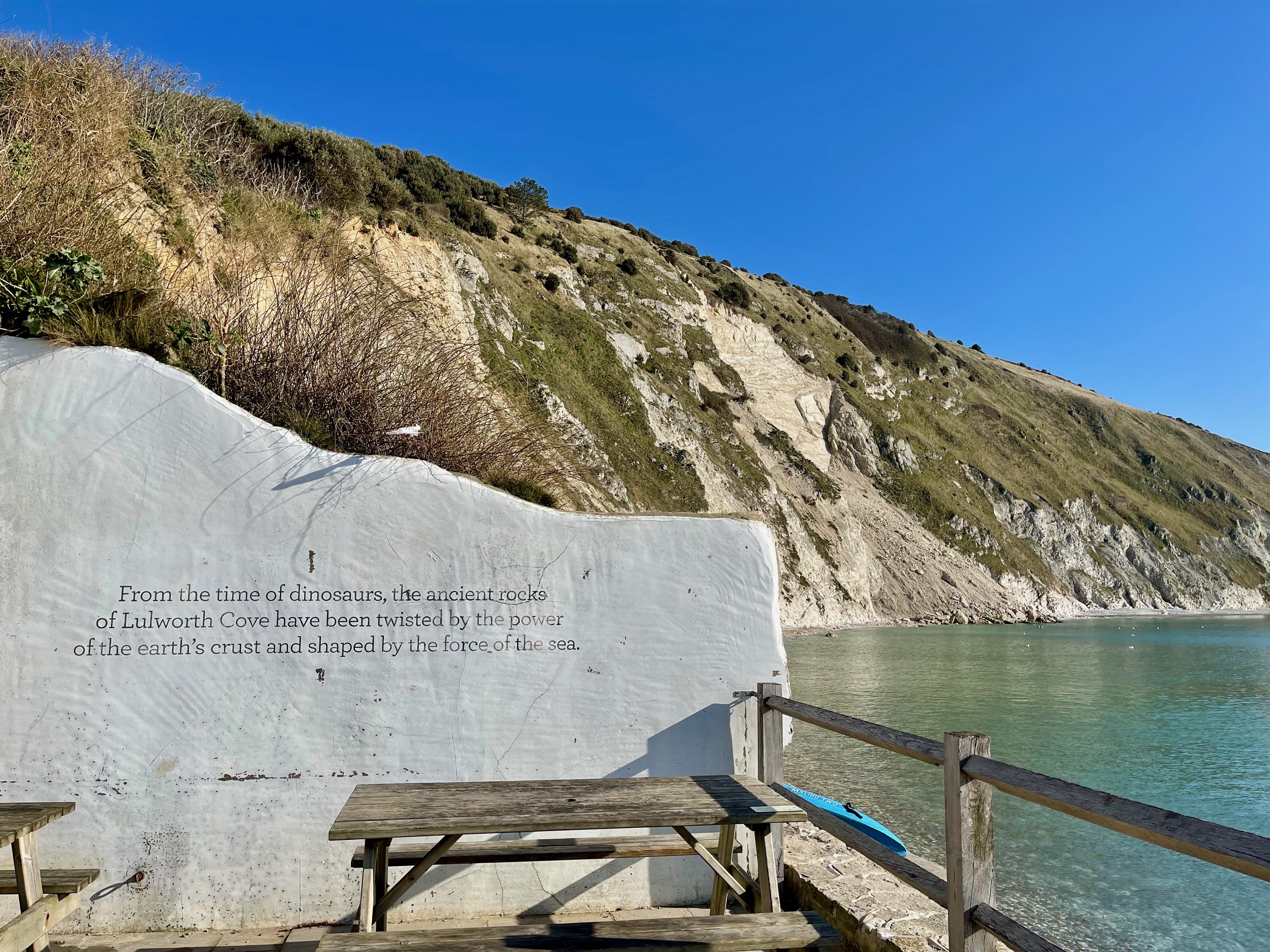 We’re walking around the park at Lulworth Castle when we hear the guns from the Lulworth ranges. I’d never heard machine gunfire before, but it’s unmistakeable and so at odds with the serenity of the place. It feels incongruous to be in a park where daffodils and birdsong exist at the same time as machine gun clatter. In the castle’s tearoom they tell us it’s actually a quiet day and you do get used to it.
