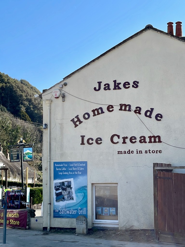 We bought some local cheeses – including a Devon blue – as well as some local butter (oh my) and some pate. We also had a coffee with our first scone for the trip. And yes, we went with the Devonshire way of clotted cream followed by jam. I make a mental note to reverse this order when we’re in Cornwall.