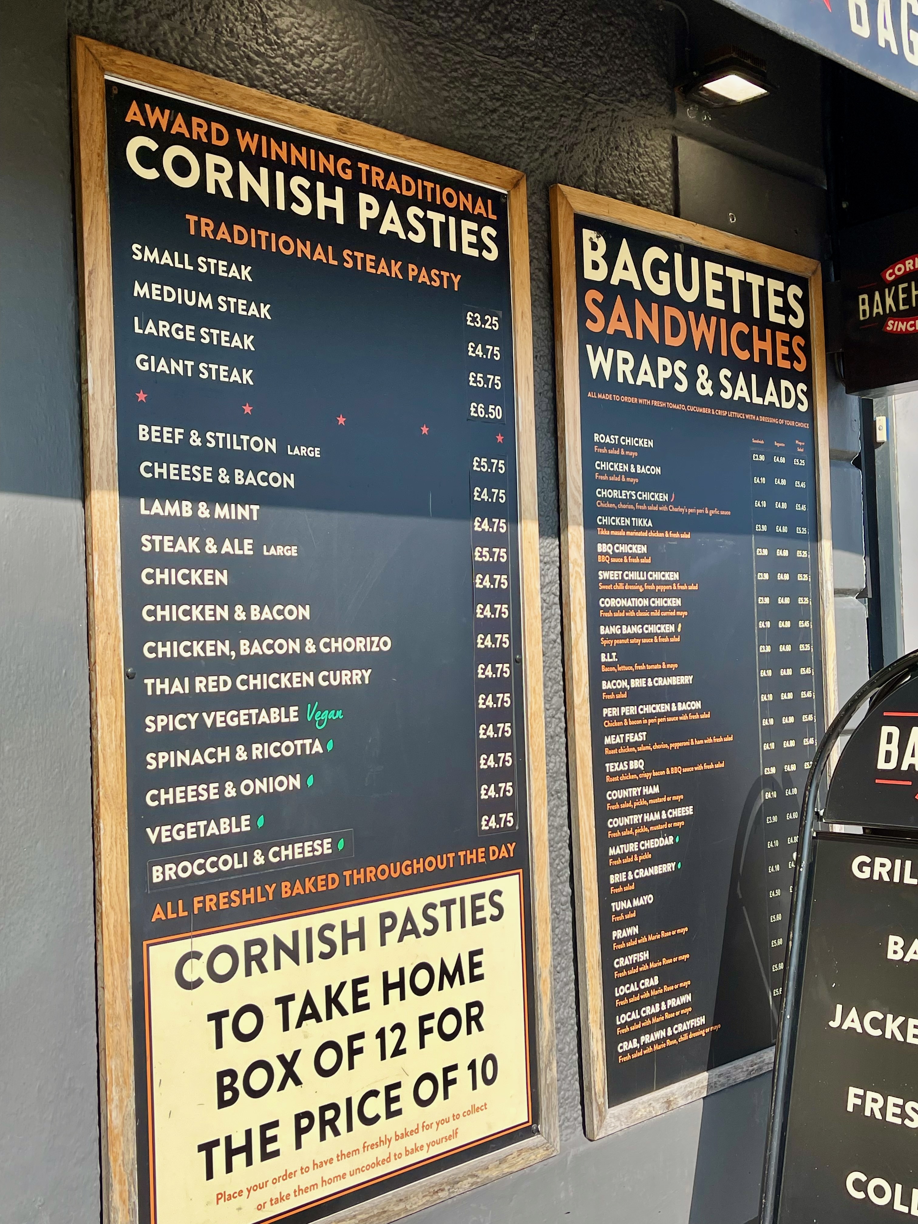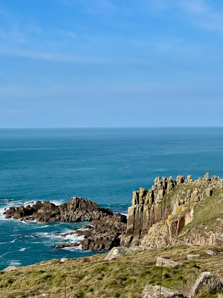 We hoped to get lunch in Newlyn or Penzance on our way to Lands End so shared a Cornish pasty to keep us going until then. (Spoiler alert, we didn’t. Parking was a nightmare in both Penzance and Newlyn and the place I had in mind to eat at in Newlyn was closed for the season, but by the time we worked that out it was too late.)