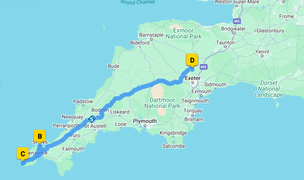 It’s a big driving day today as the plan is to visit St Ives and Lands End – a key point on our Bottom To The Top Via Everywhere In Wales Mum Named A Corgi After Tour – returning via Padstow and Tintagel.