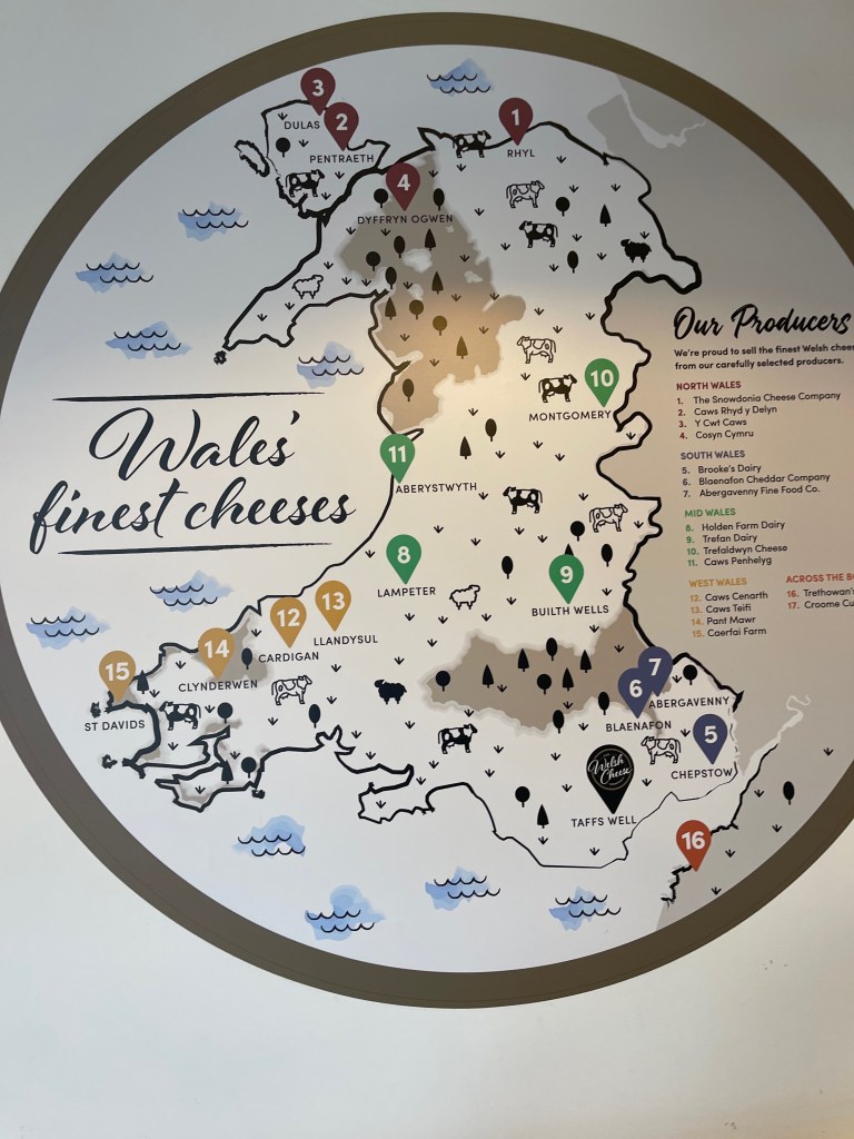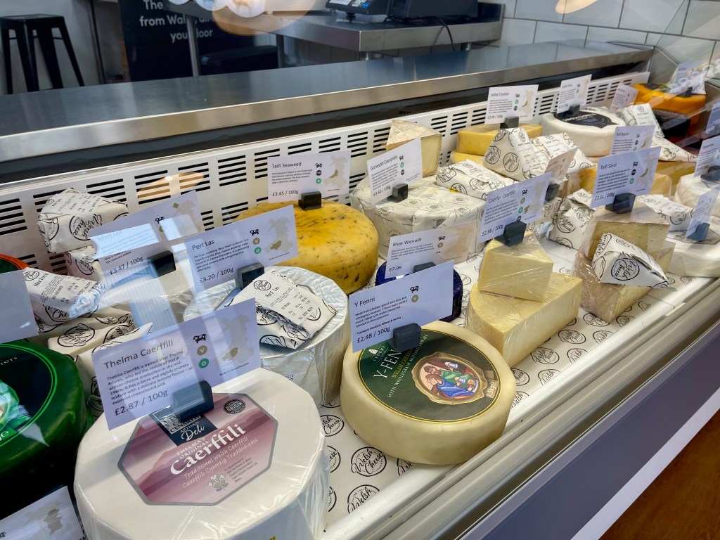 In search of Caerphilly cheese, we stopped at The Welsh Cheese Company in an industrial complex at Taffs Wells. While we bought some Caerphilly, it wasn’t made up the road in Caerphilly. You see, while Caerphilly cheese originated in Caerphilly, these days most of it is produced in England – namely in Somerset and Wiltshire. We did, however, buy some Caerphilly and a couple of Welsh cheeses.