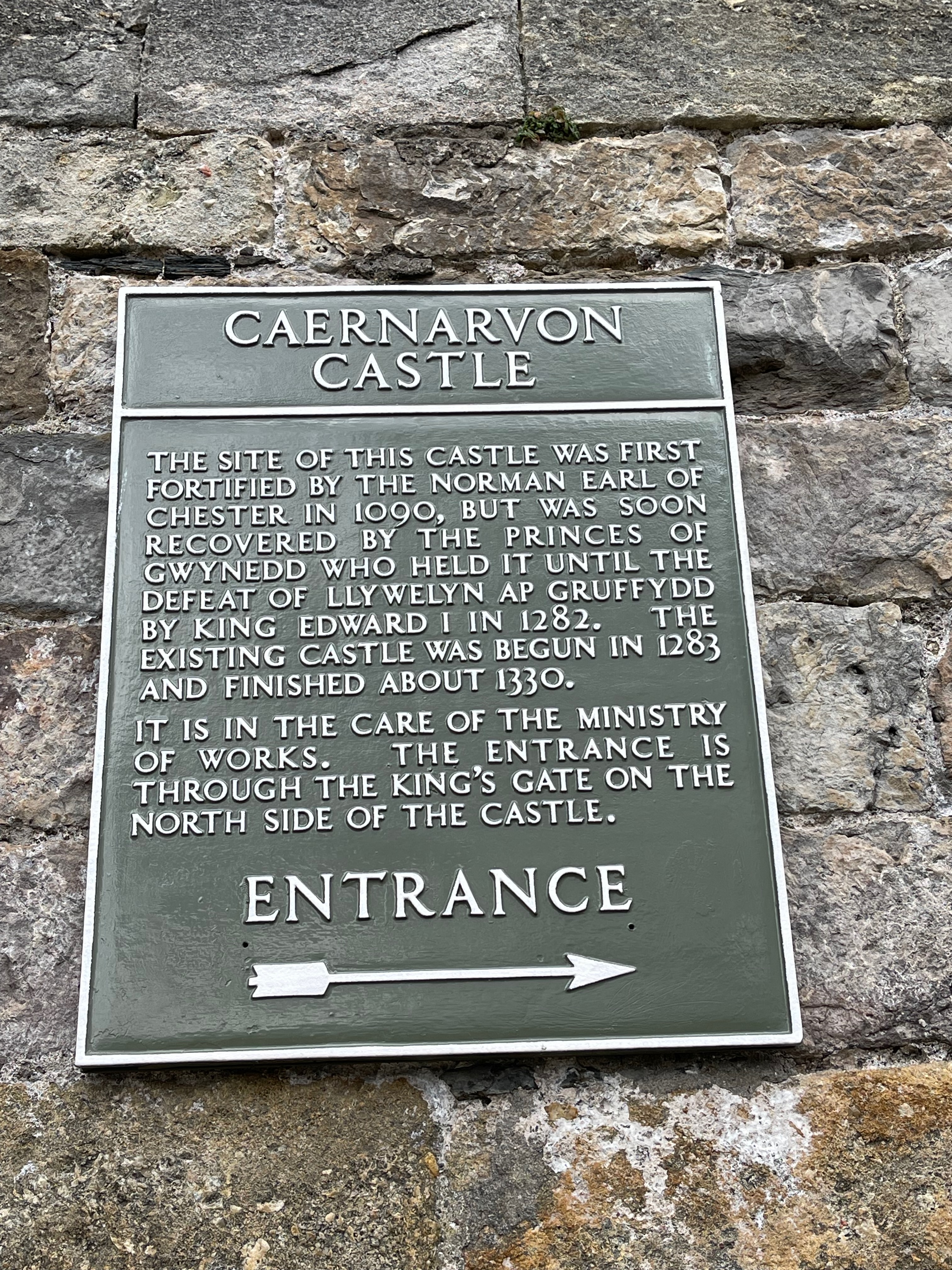 Edward I of England conquered northern Wales and made it a principality in 1284 (the heir to the English throne has carried the title Prince of Wales pretty much ever since). In order to “pacify” the Welsh, Edward (who we saw in action in Braveheart) began building castles in which he installed his own loyal nobles. Caernarfon Castle was one of these.