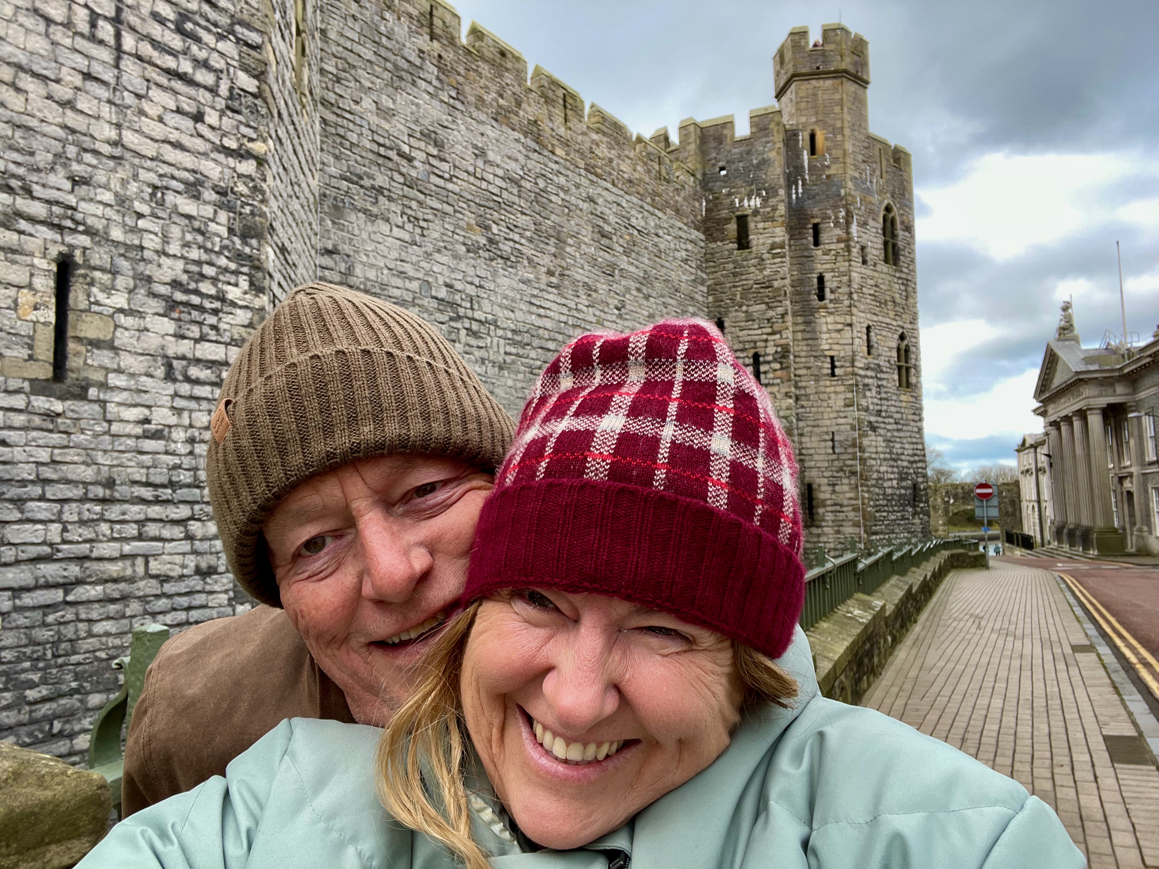 It’s cold in Caernarfon with a “feels like” temperature of zero. Brrrr. We don parkas, scarves and beanies and leave the warmth of the car to go in search of coffee – and to have a peek at the castle.