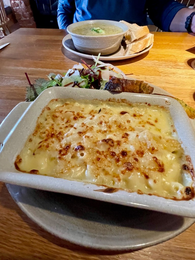 We had a good lunch at the George and Dragon – a pub dating back to the 15th century. I had macaroni cheese with a salad and garlic bread made with wild garlic. Grant had leek and wild garlic soup and a side of chips. If I hadn’t been so happy with my so-bad-for-me-but-so-good macaroni cheese I would have had food envy.