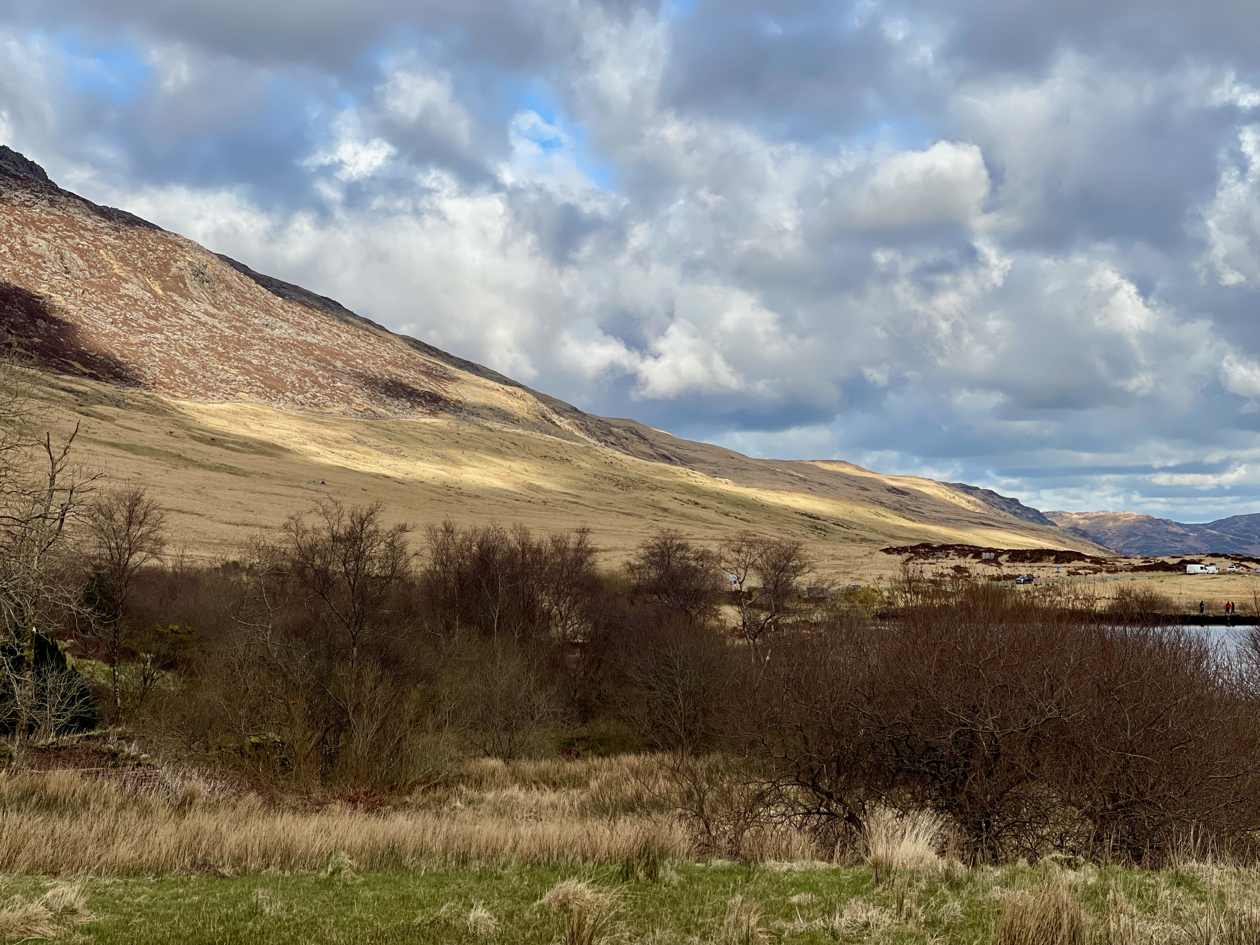 As we drove along the valley towards Caernarfon, a couple of low-flying F-number planes roared through, reminding us of that time in a misty Glencoe almost thirty years ago when the same thing happened.