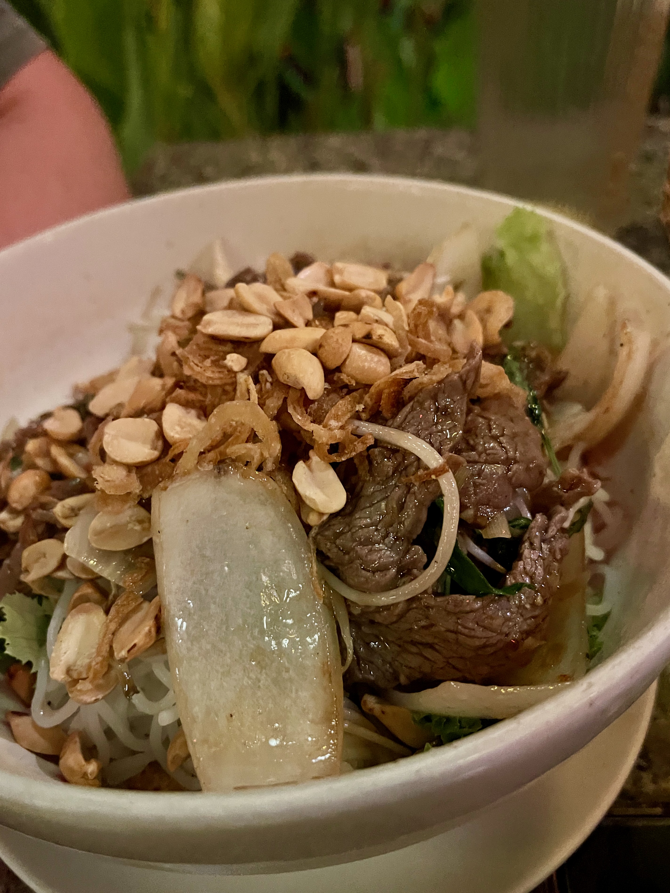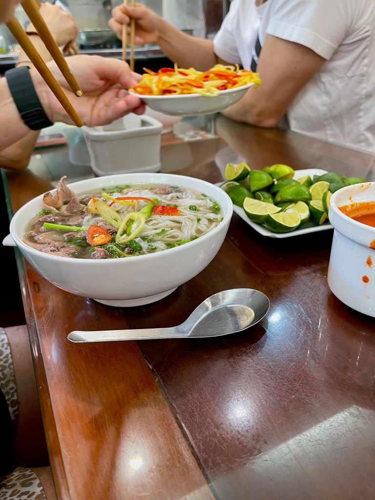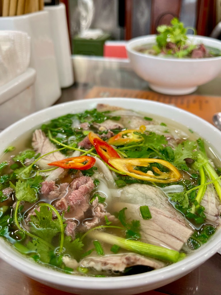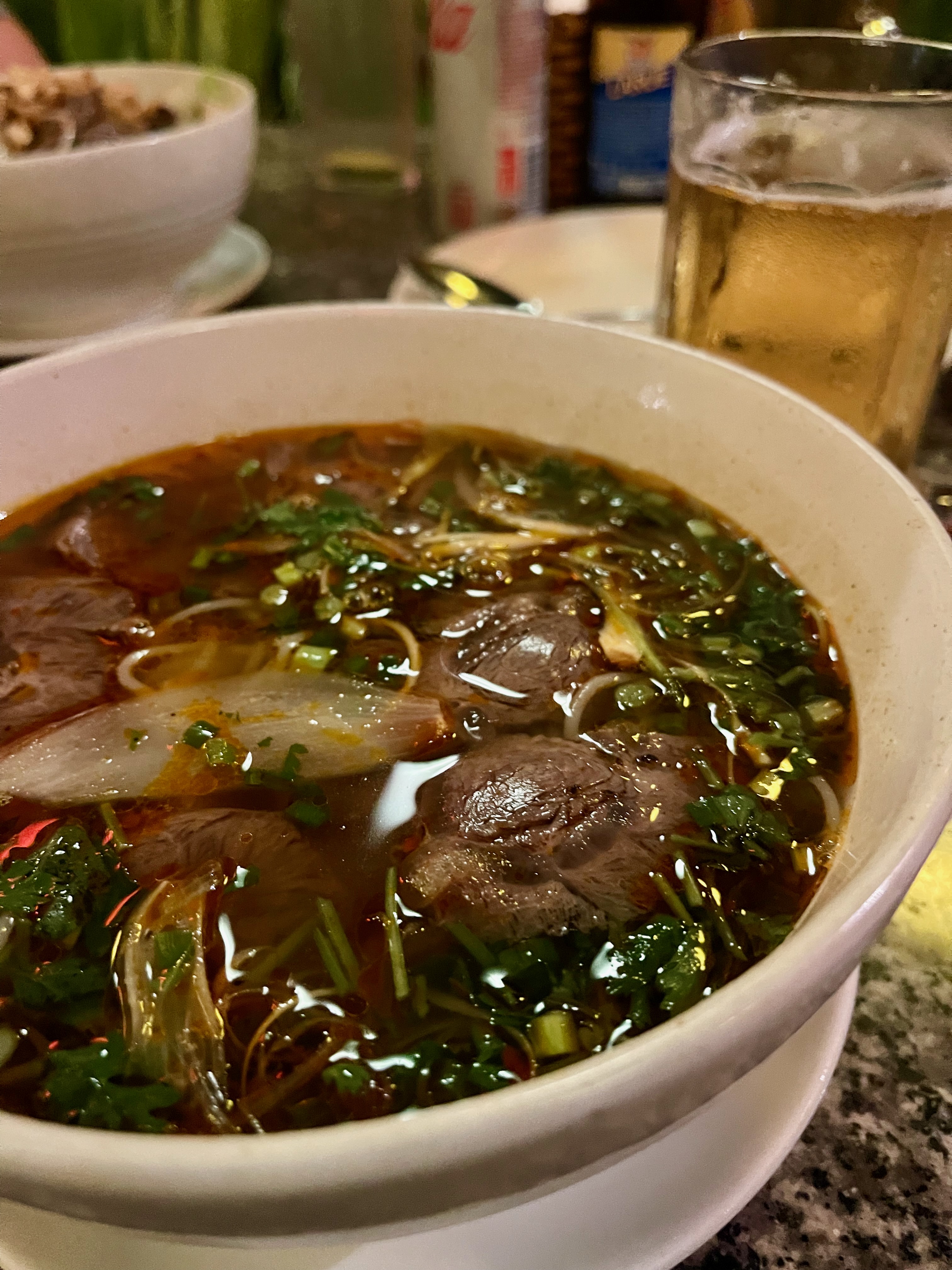 We ate the brisket with flank beef for 70,000 VND a bowl, so about $4 AUD.