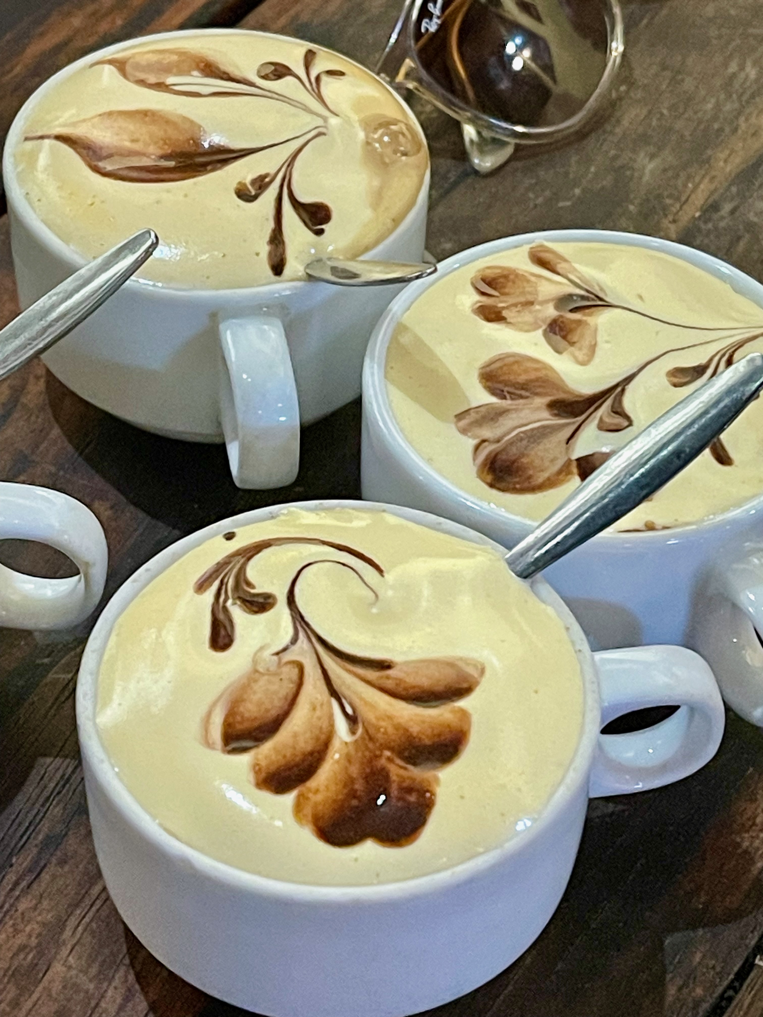 One night in 1946 Mr Giang ran out of milk to serve with the coffee. Milk was in scarce supply in those days. Instead he whisked together some egg, sugar and condensed milk and served that on the coffee. The crowd went wild, and Mr Giang, being a forward thinking gent, opened his own café and the rest, as they say, is history.
