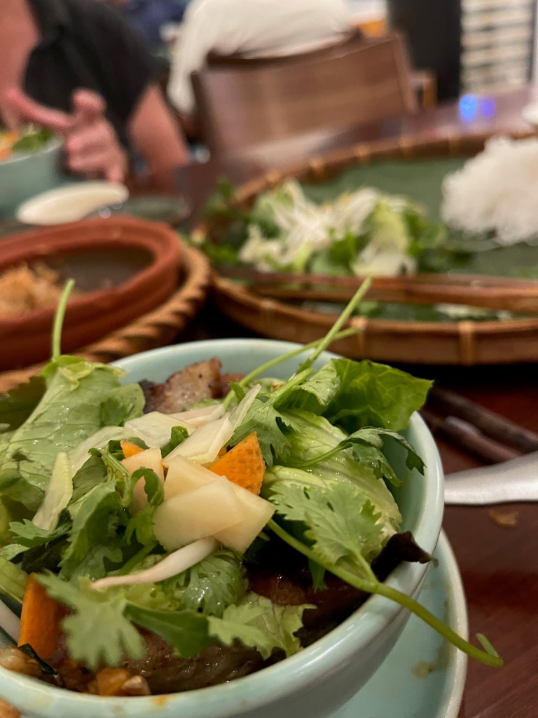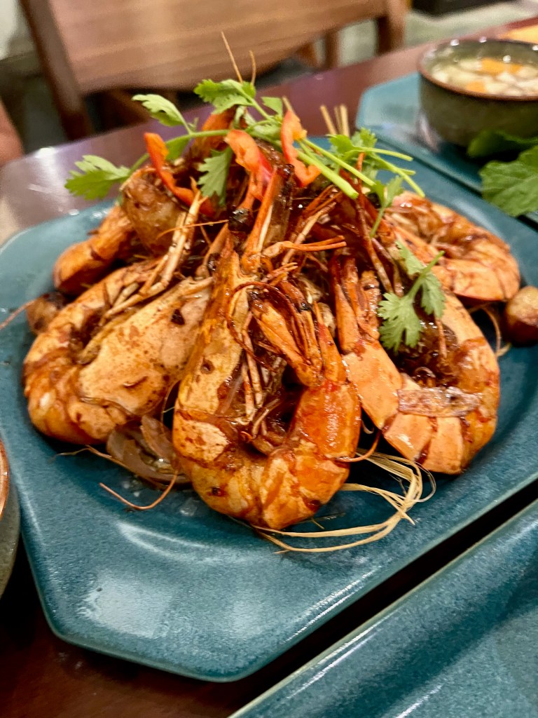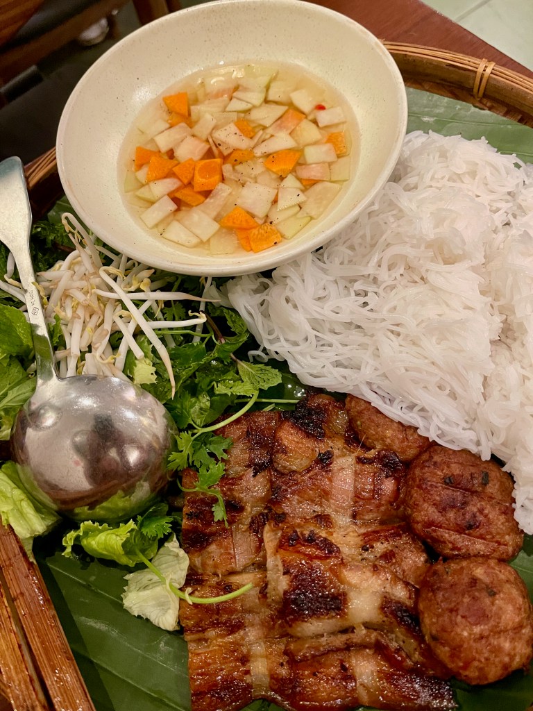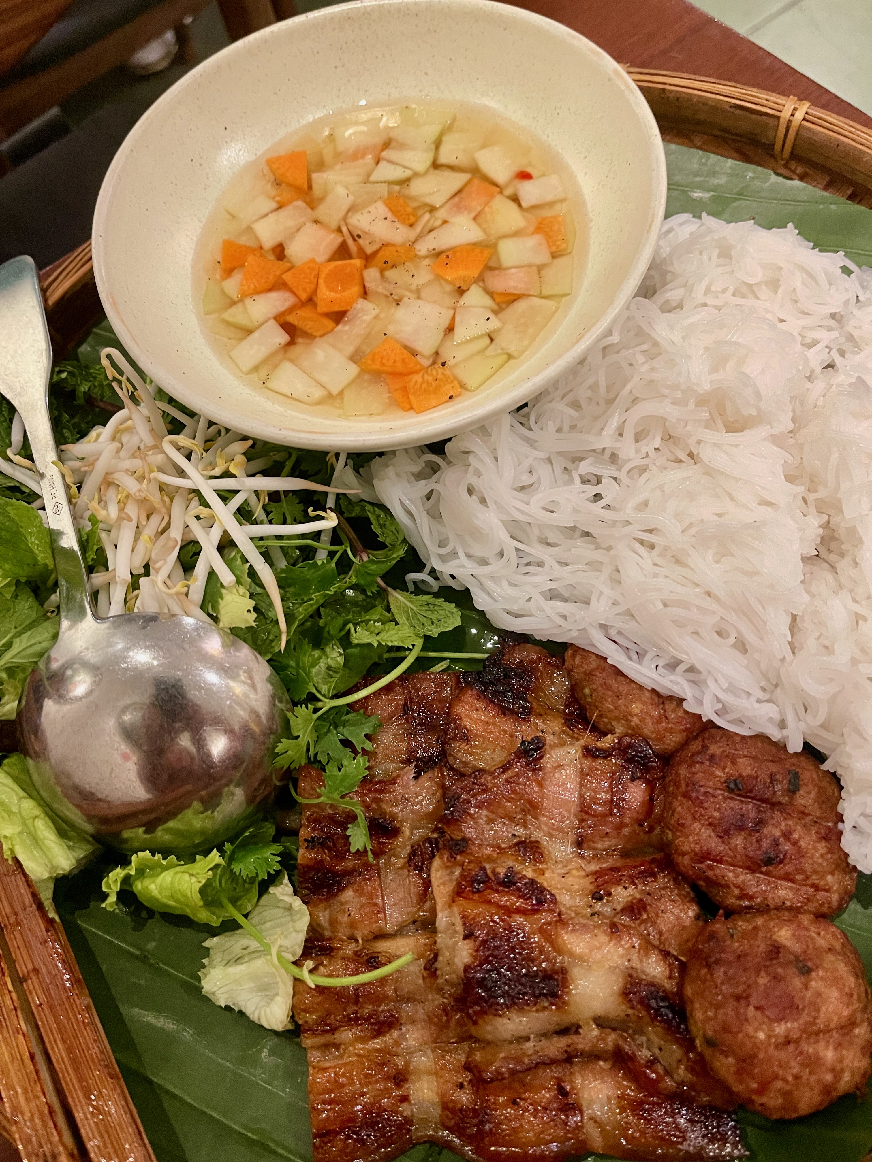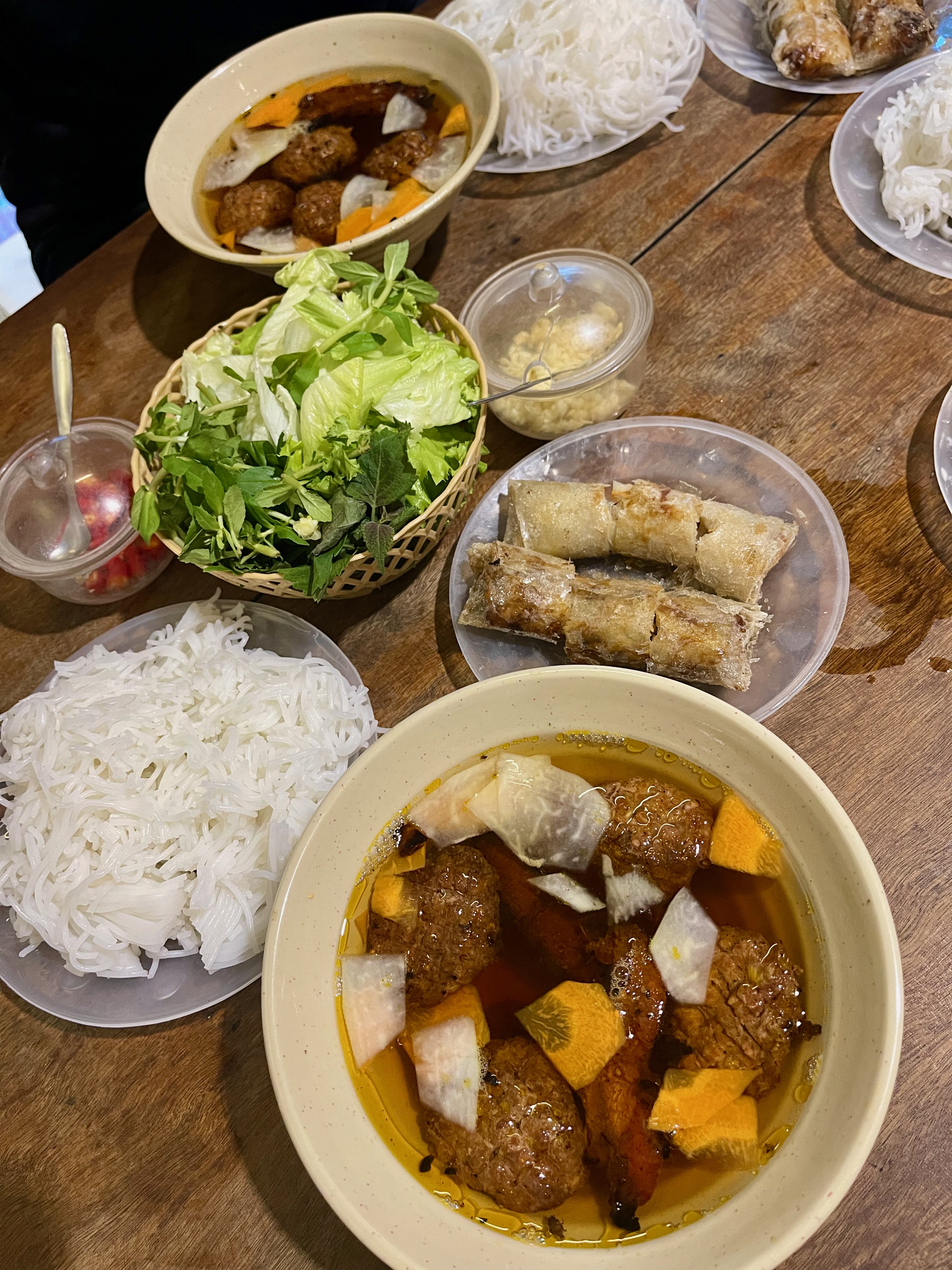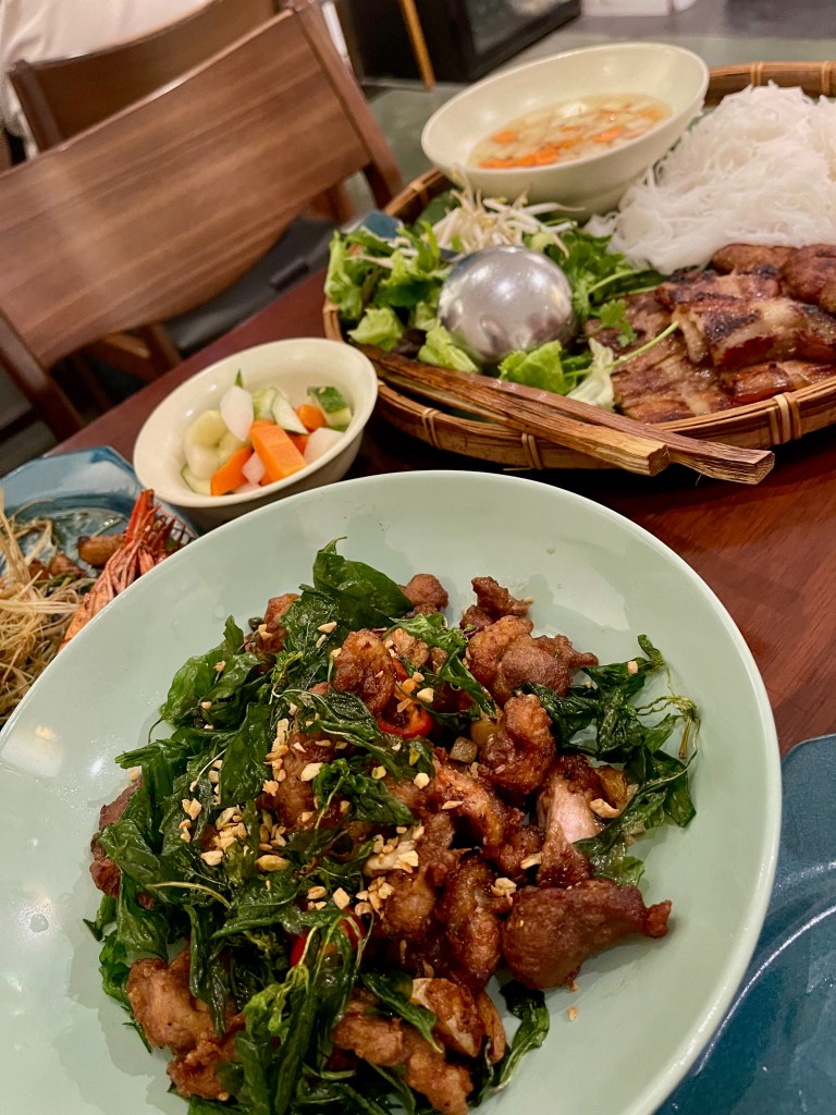 We ate shrimp spring rolls, deep-fried shrimp, bun cha, pan-seared duck, and Vietnamese grilled chicken. We drank beer. The bill came to 1,918,000 VND ($113 AUD) for the three of us and was worth every dong.