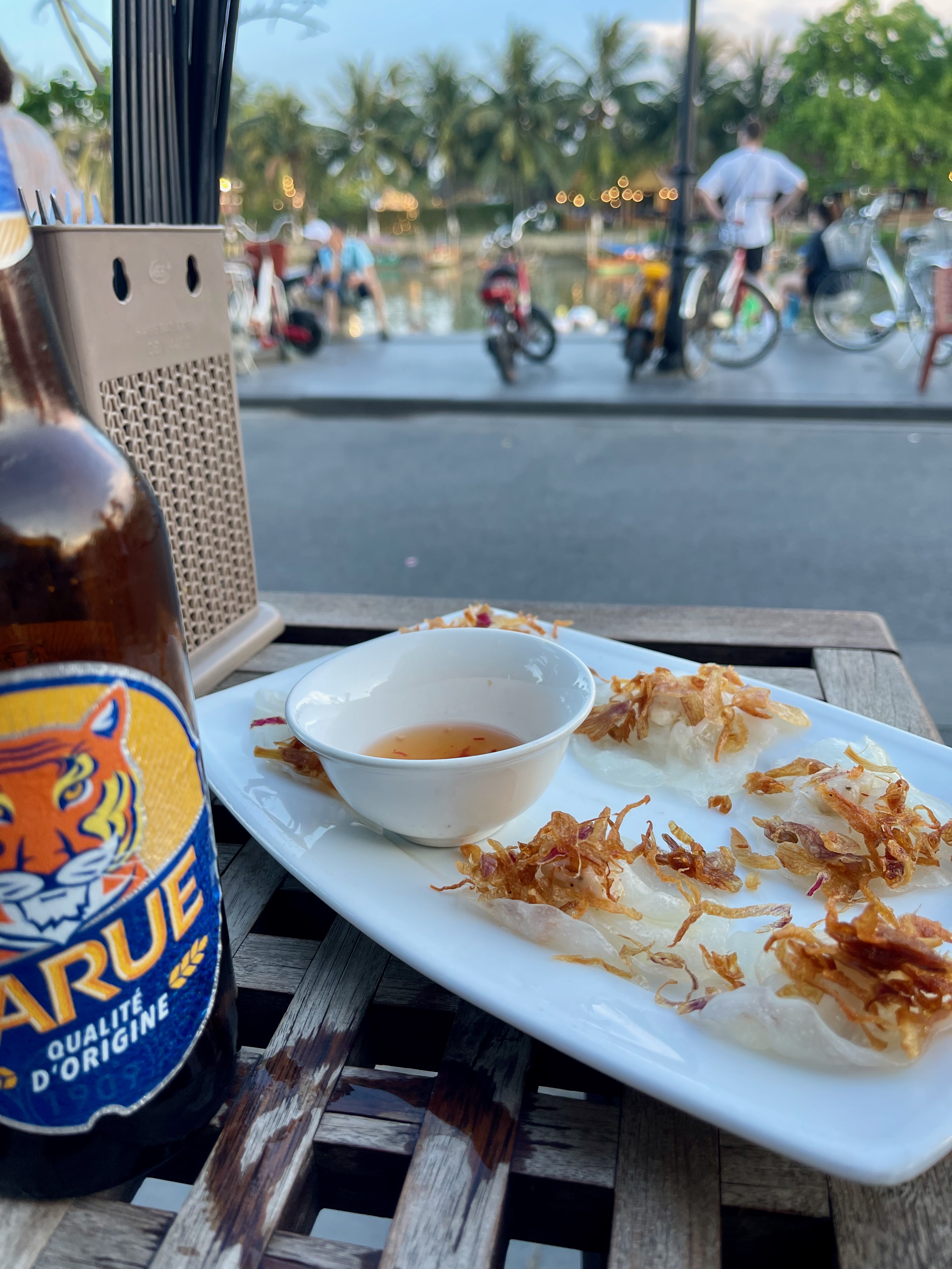 The White Rose dumplings are made by just one family who supplies to everywhere in town, but the price does differ from place to place, from as cheap as 60,000 VND to 125,000 VND, depending on how close to the river you’re eating.