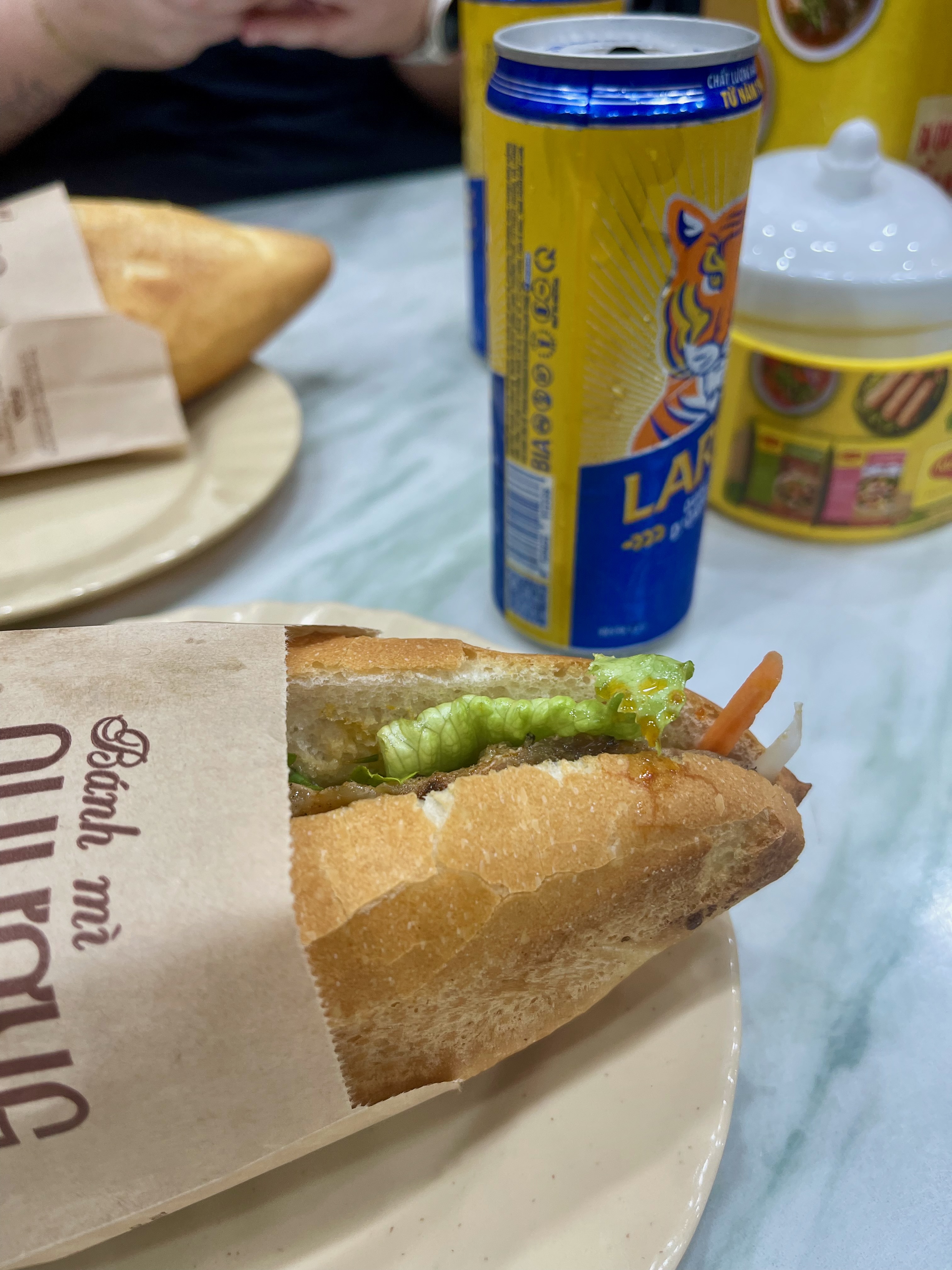 Fabulous bahn mi, tiny prices – 165,000 VND is the total bill for lunch for all three of us – including beer.