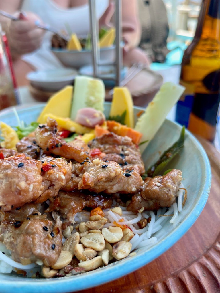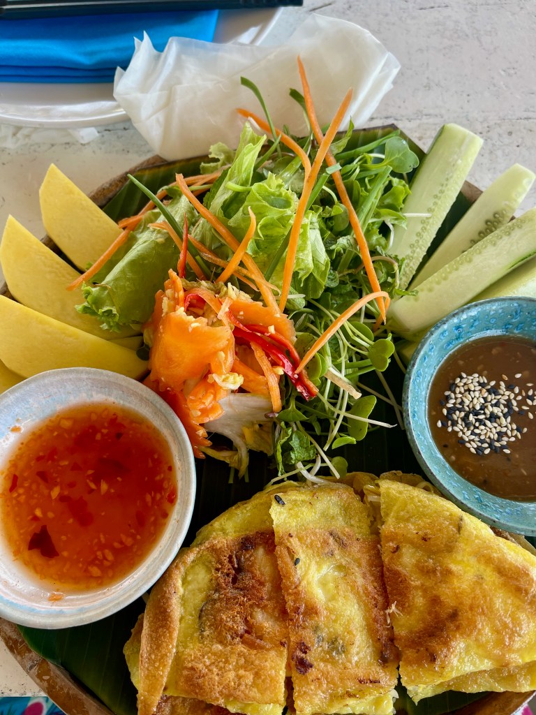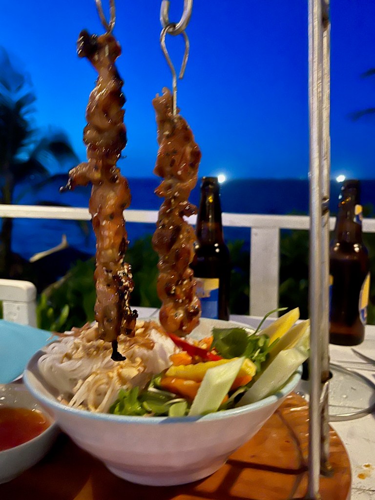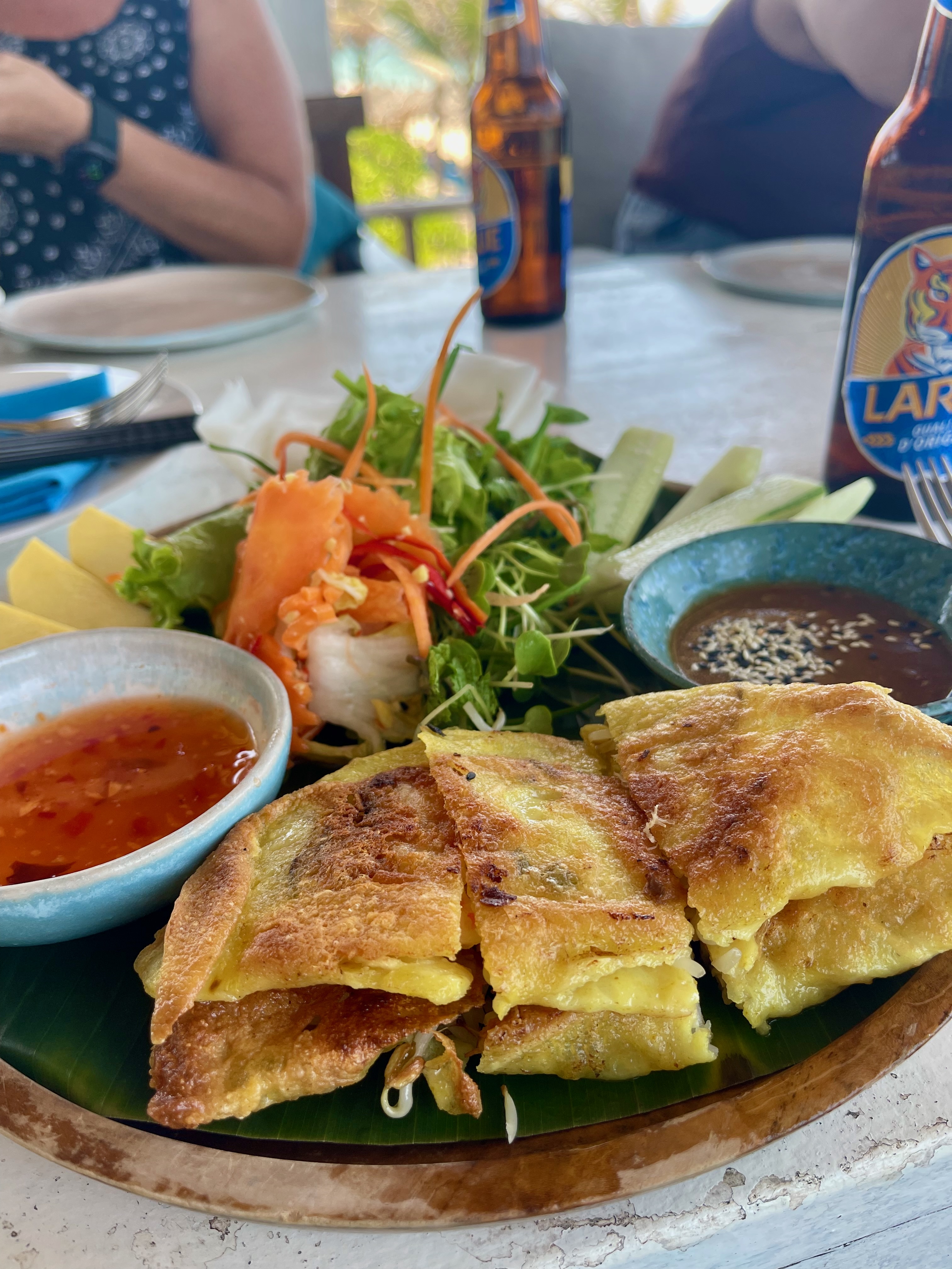 We loved this beachside spot and had lunch here a couple of times and dinner once. The Bahn Xeo (in particular) was fantastic – and, at 120,000 VND ($7 AUD) fantastic value.