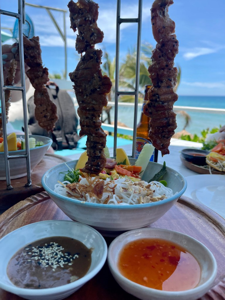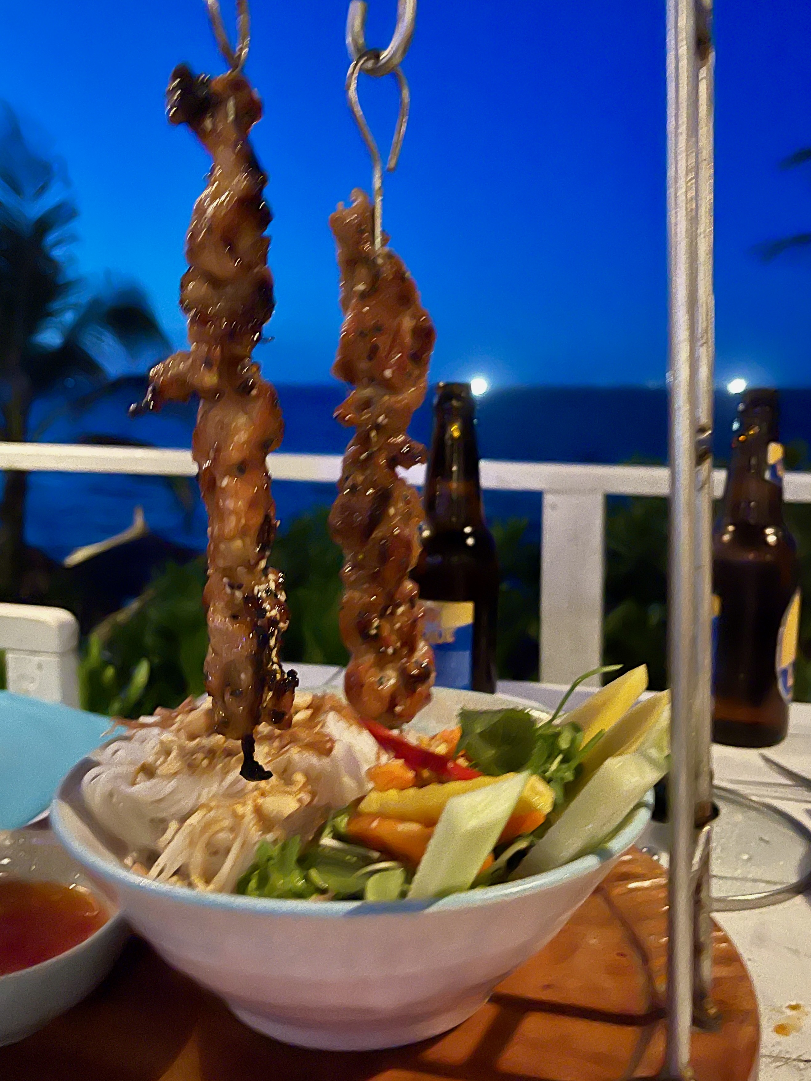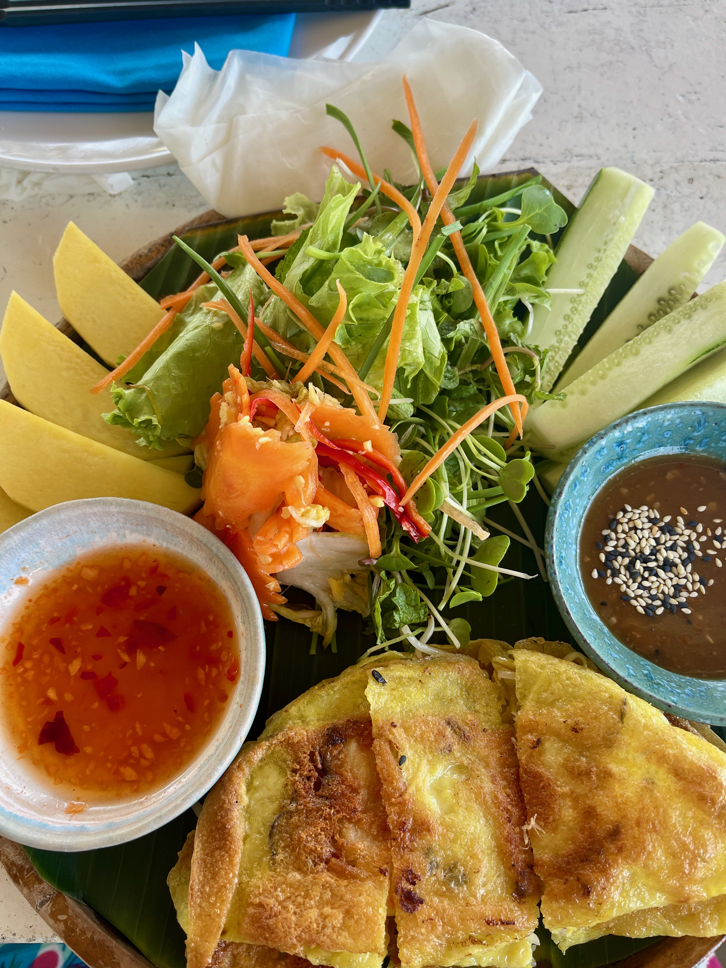 We loved this beachside spot and had lunch here a couple of times and dinner once. The Bahn Xeo (in particular) was fantastic – and, at 120,000 VND ($7 AUD) fantastic value.