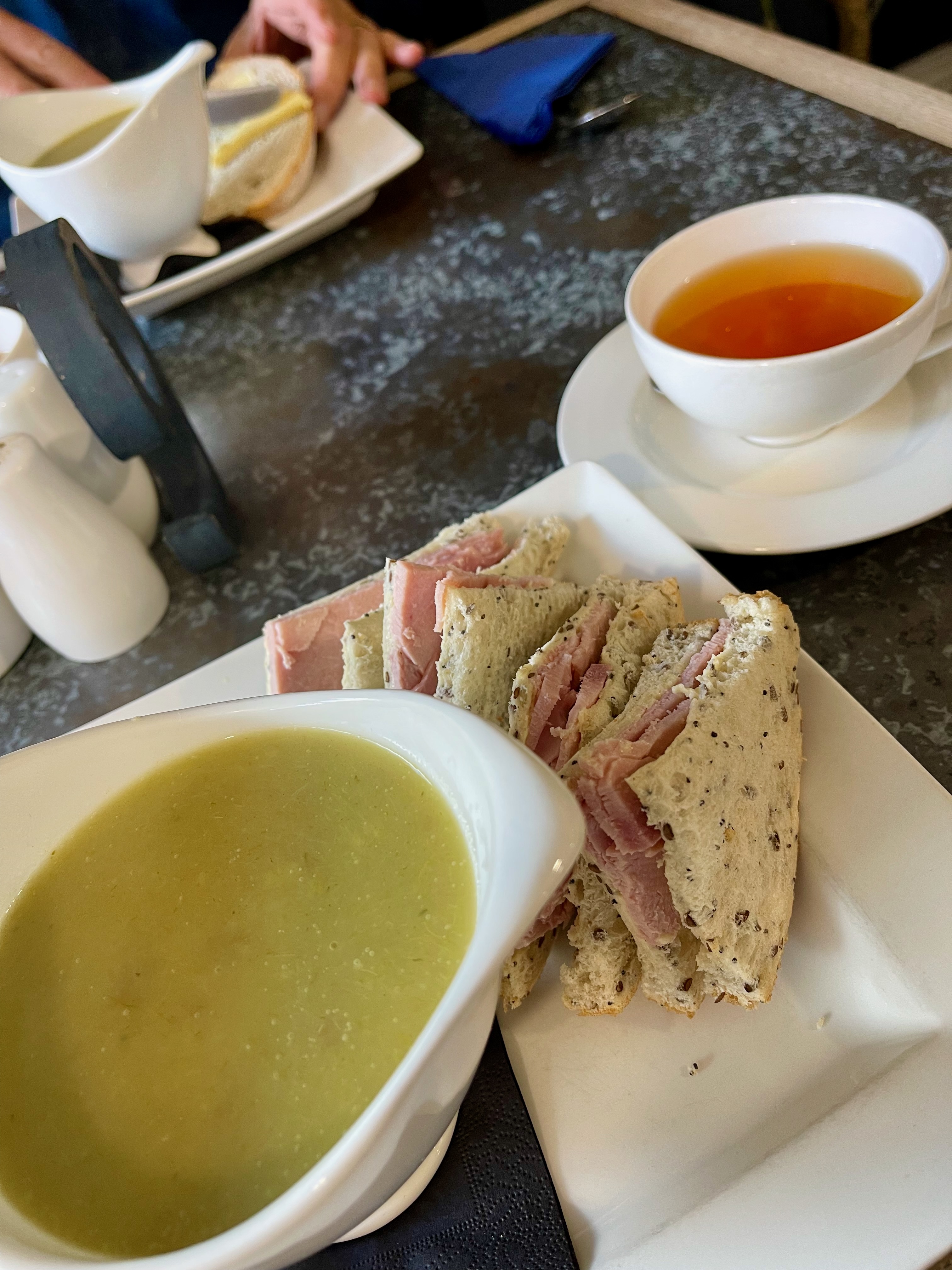 Lunch was at Utopia, a café in Windermere. Again we had the soup of the day (potato and leek today) and shared a ham sandwich on the side.