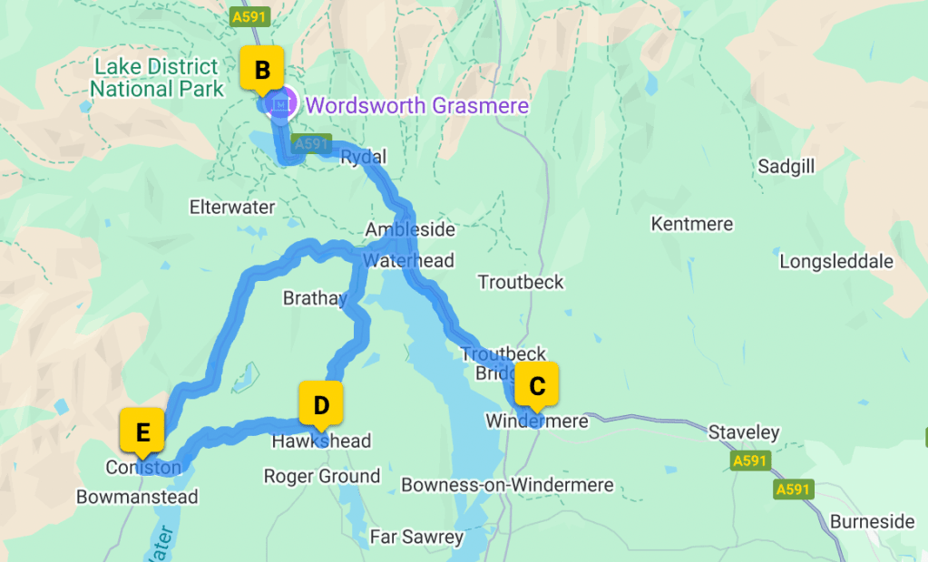 Grant wasn’t interested in the whole Wordsworth thing, so he amused himself walking around Grasmere while I was in the cottage. More of those low-flying f-number planes came through the valley when I was walking back to join him. I asked in a café what they were – apparently they are F35S and a mix of British air force and NATO planes. Mystery solved.