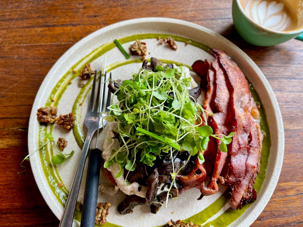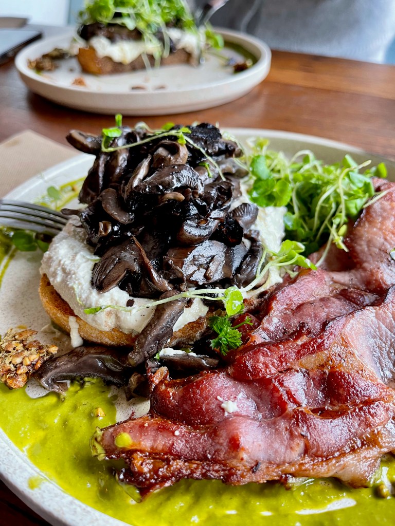 I remember Sarah lived in an bay area for awhile. And you would go visit and write on her porch/balcony or maybe at a nearby coffee shop? Am I dreaming this? At first I thought Byron Bay was the place but now I am thinking it was something like Hervey Bay or Hervery Bay? Anyway, I was always dazzled by how lovely it was where Sarah lived and this Byron Bay sounds equally charming. Or maybe not as charming as it once was but certainly bustling. All the dishes you eat on your globetrotting adventures sure beat the McD’s and Taco Bell my PC is so taken with. Ugh. Would love to try the mushroom toast. A restaurant devoted strictly to toast just opened here!! Maybe they have something similar on the menu.