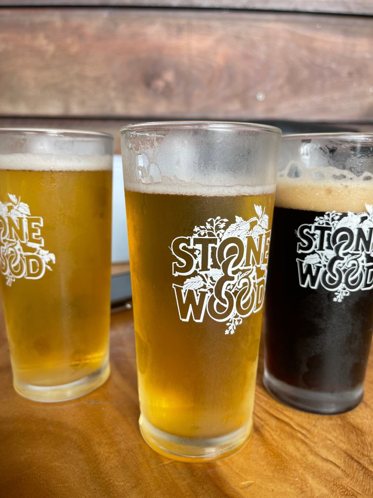 Day drinking not quite done, we called into Stone & Wood, a Byron-based brewery, so Grant could finally have a drink. I’d had enough, so I chose their no alcohol beer instead.
