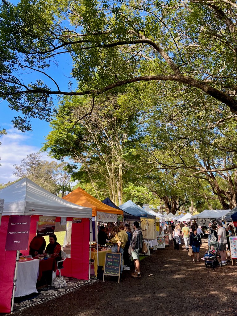 On Sunday morning we skipped breakfast and headed to the markets at Bangalow. Sarah and Grant picked up a snack from one of the food trucks while I got one of the worst tarot readings I’ve had in my life (no judgement, please). Let’s just say I wrote it down as soon as I got back in the car, and it will be appearing (almost word for word) in the third Clementine Carter mystery.
