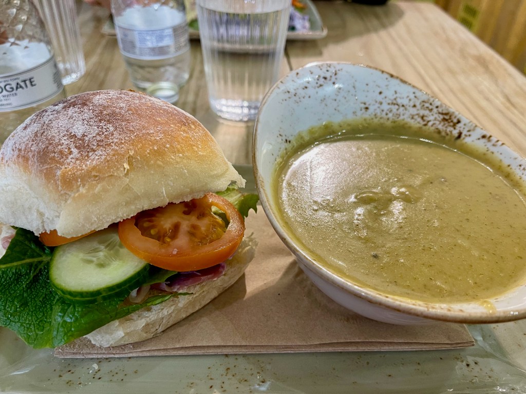 Lunch today was at the farm shop at Lower Sizeburgh, where the cows in the shed are live-streamed into the café. I had broccoli and cheese soup with a cheese and salad roll on the side and Grant had a quiche. When I get home, I want to make more quiches for weekends, and more bread. Whether I do or not is another thing. The intention is there, though. Note to self, must also make the currant slice Grant had with his coffee.