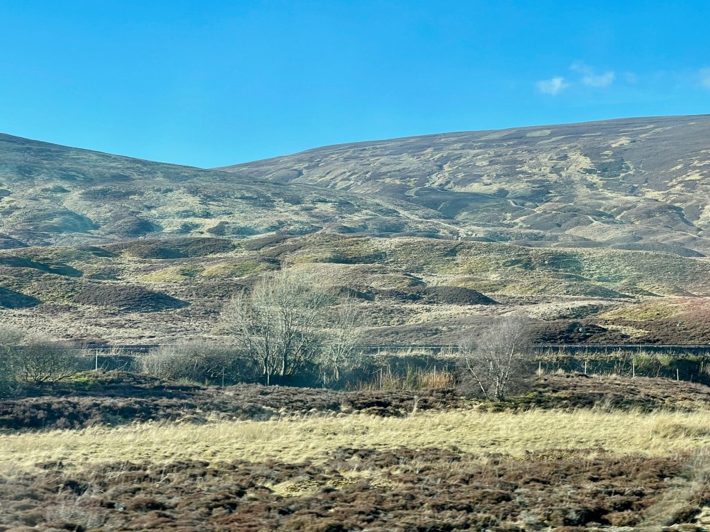 Today, the skies are blue, and it’s beautiful in a different way, the occasional waft of smoke across the moors coming from underground peat fires.