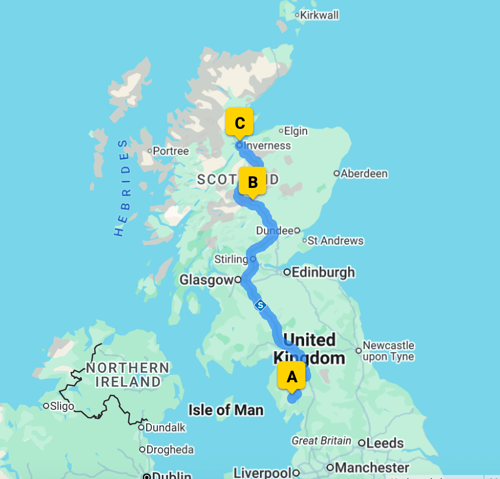We’re spending the next few nights at the Mercure in Inverness. It’s right in the centre of town and, importantly, has parking.