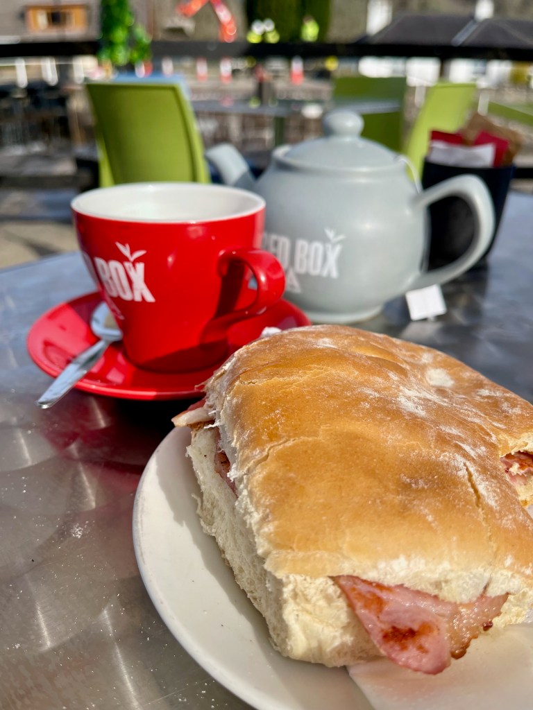 First up, though, is a late breakfast. After waving hello to Nessie in Loch Ness, we sat alongside the Caledonian Canal at Fort Augustus to eat our bacon baps.