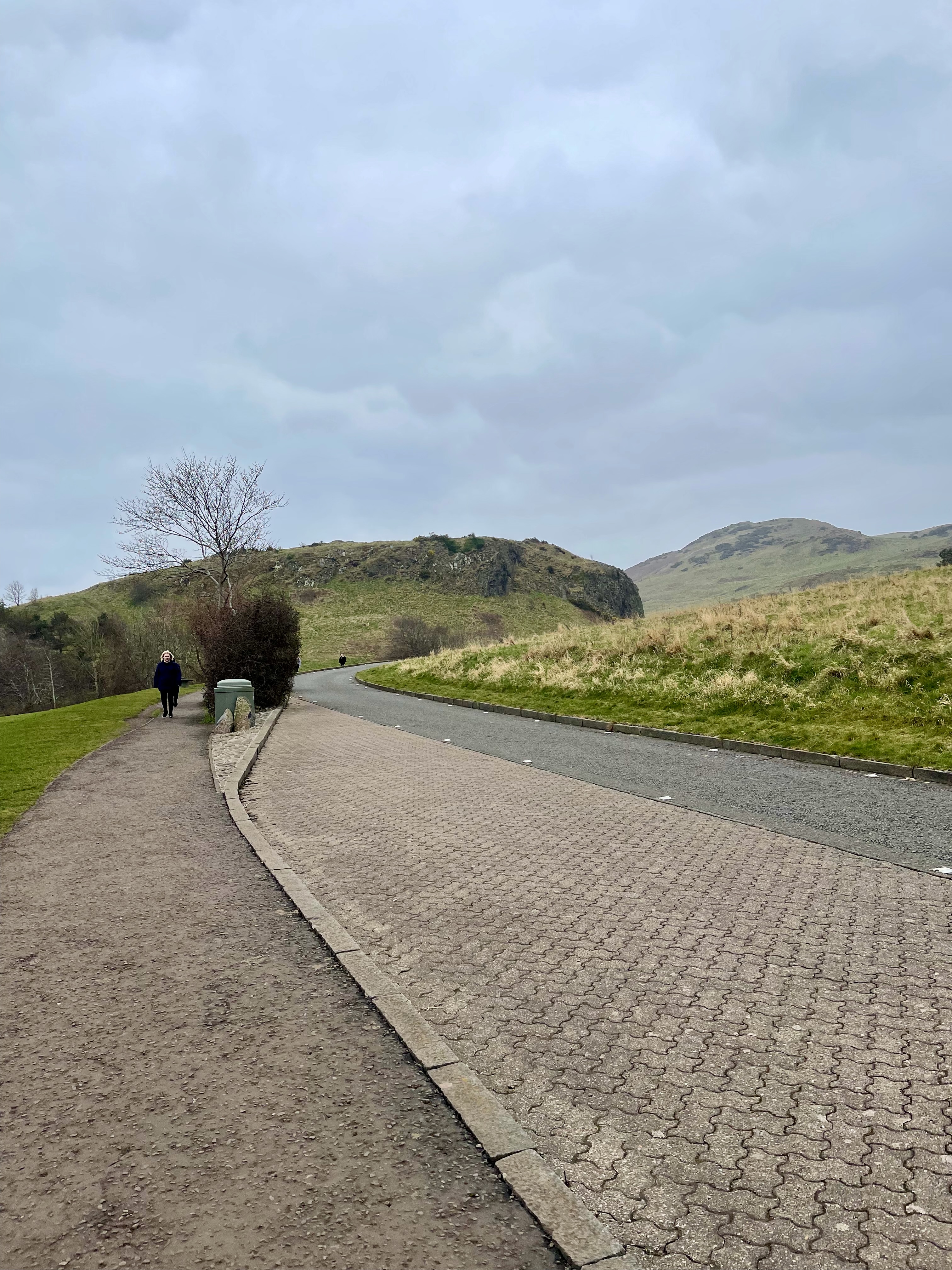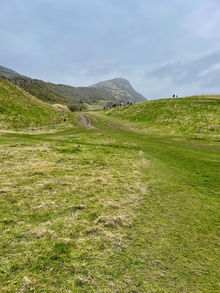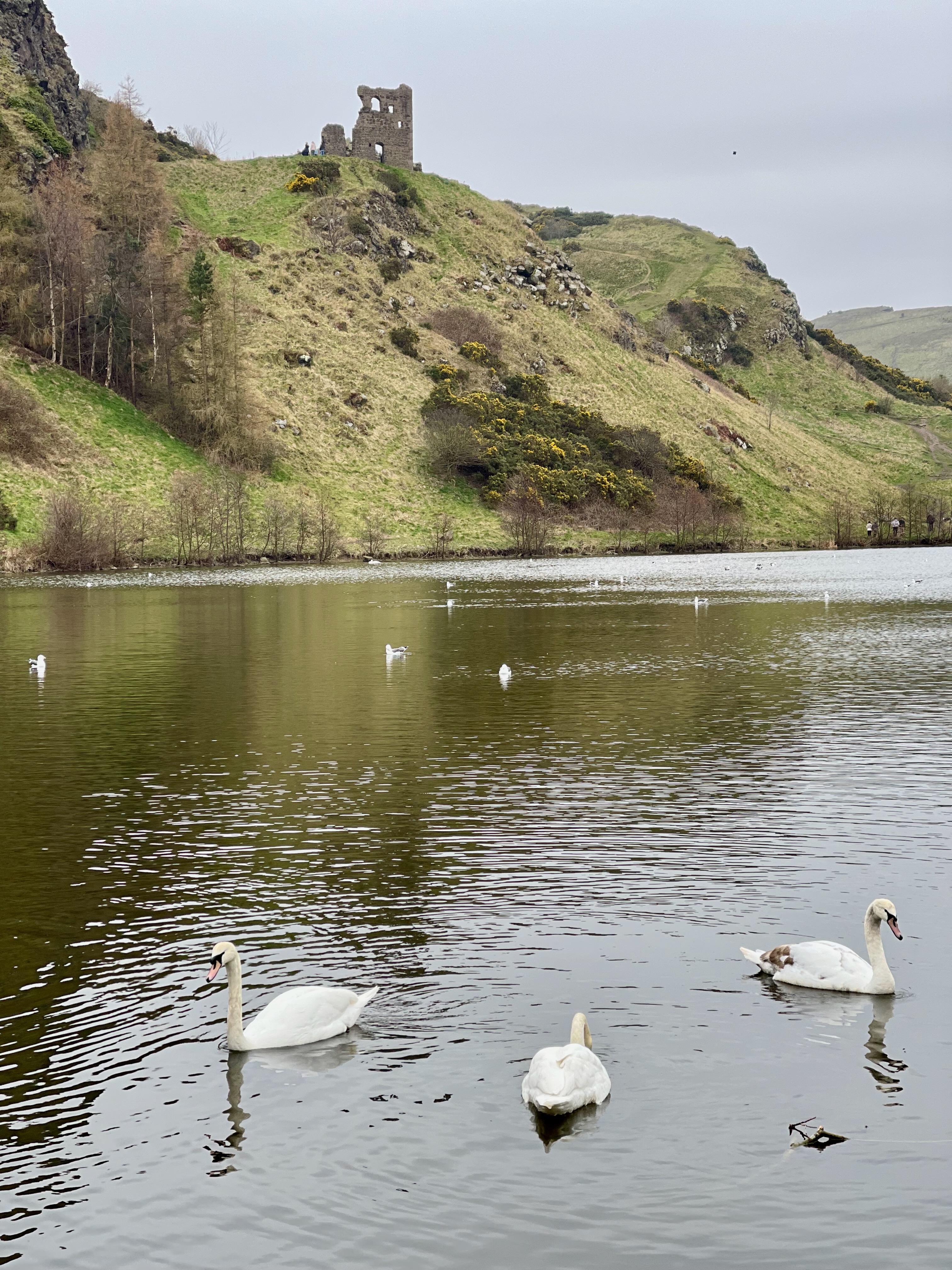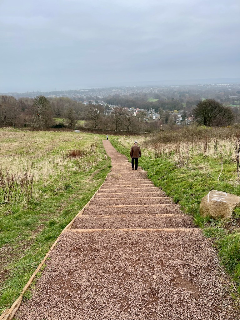 A grey day, but dry. Not too cold, but cold enough. We walked and walked and then walked some more. Mostly uphill, but with one stupidly steep downhill from Duddingston Loch down into the village. One source I read said there were 209 steps (it seemed like double that) that would ruin your day. Ain’t that the truth. They were slippery and steep, with no handrails, and as I am the complete scared-of-falling-and-wrecking-an-ankle princess that I am, I took them very slowly.
