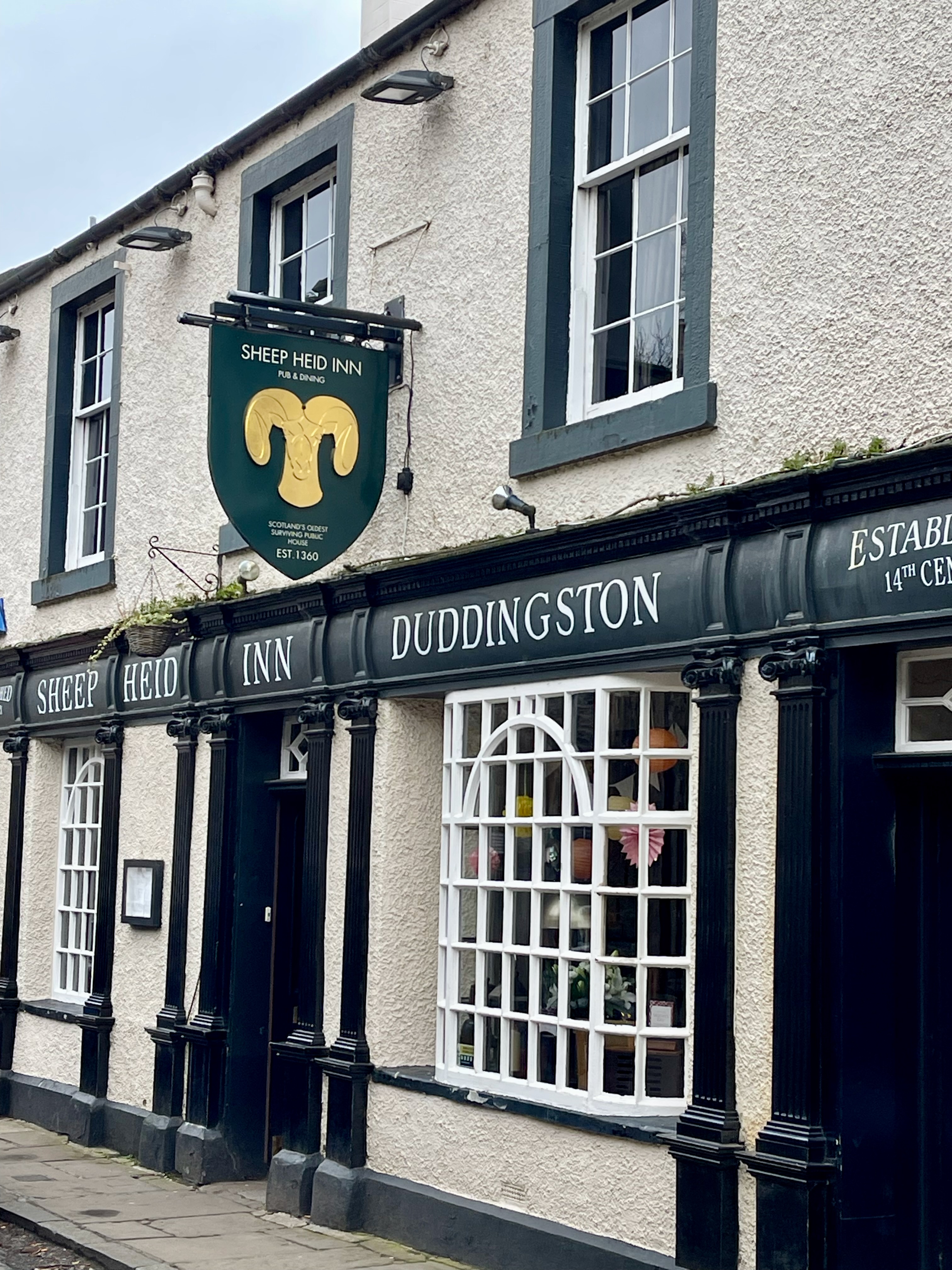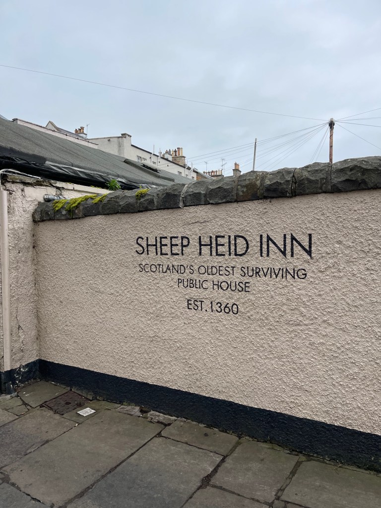 Anyways, The Sheeps Heid Inn, our destination for lunch, dates back to 1360 and is (apparently) Scotland’s oldest pub. In case you’re interested, the name it now has comes from a snuff box that was either in the shape of, or embellished with (after all this time, you’d expect the story to be a tad convoluted) a ram’s head that was presented to the landlord by James VI in 1580.
