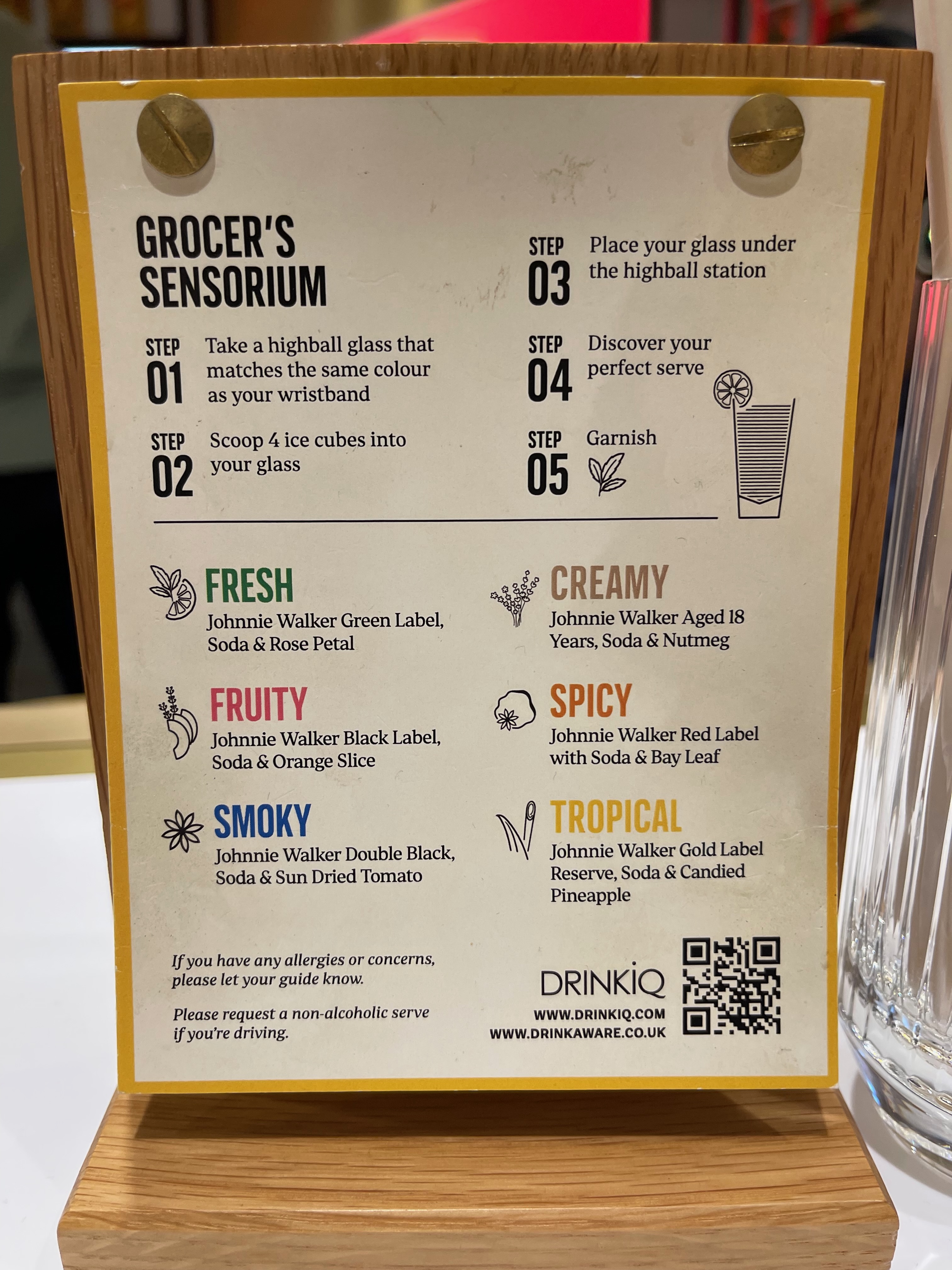 Included in the experience are three drinks. When you first enter, you’re directed to a digital questionnaire that will determine you’re preferred flavour profile. Mine was spicy, Grant’s was fruity. It’s this that determines your first drink.