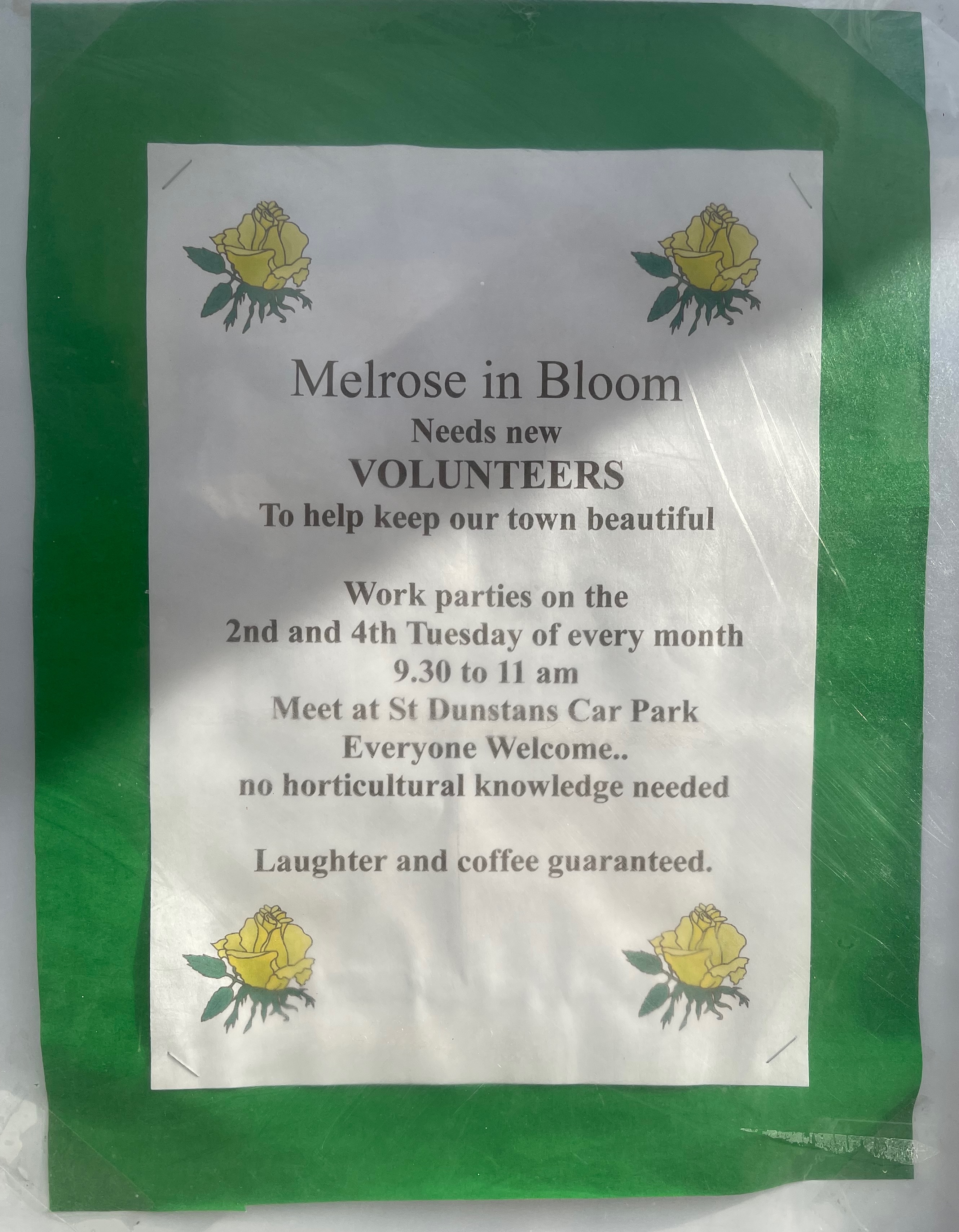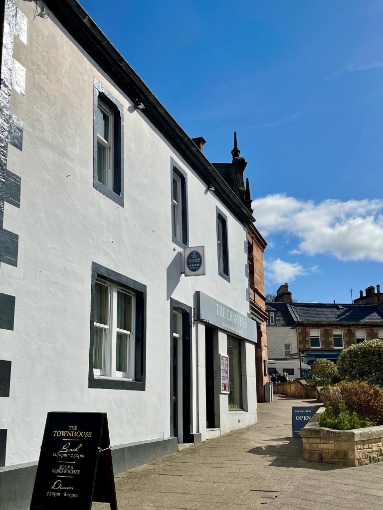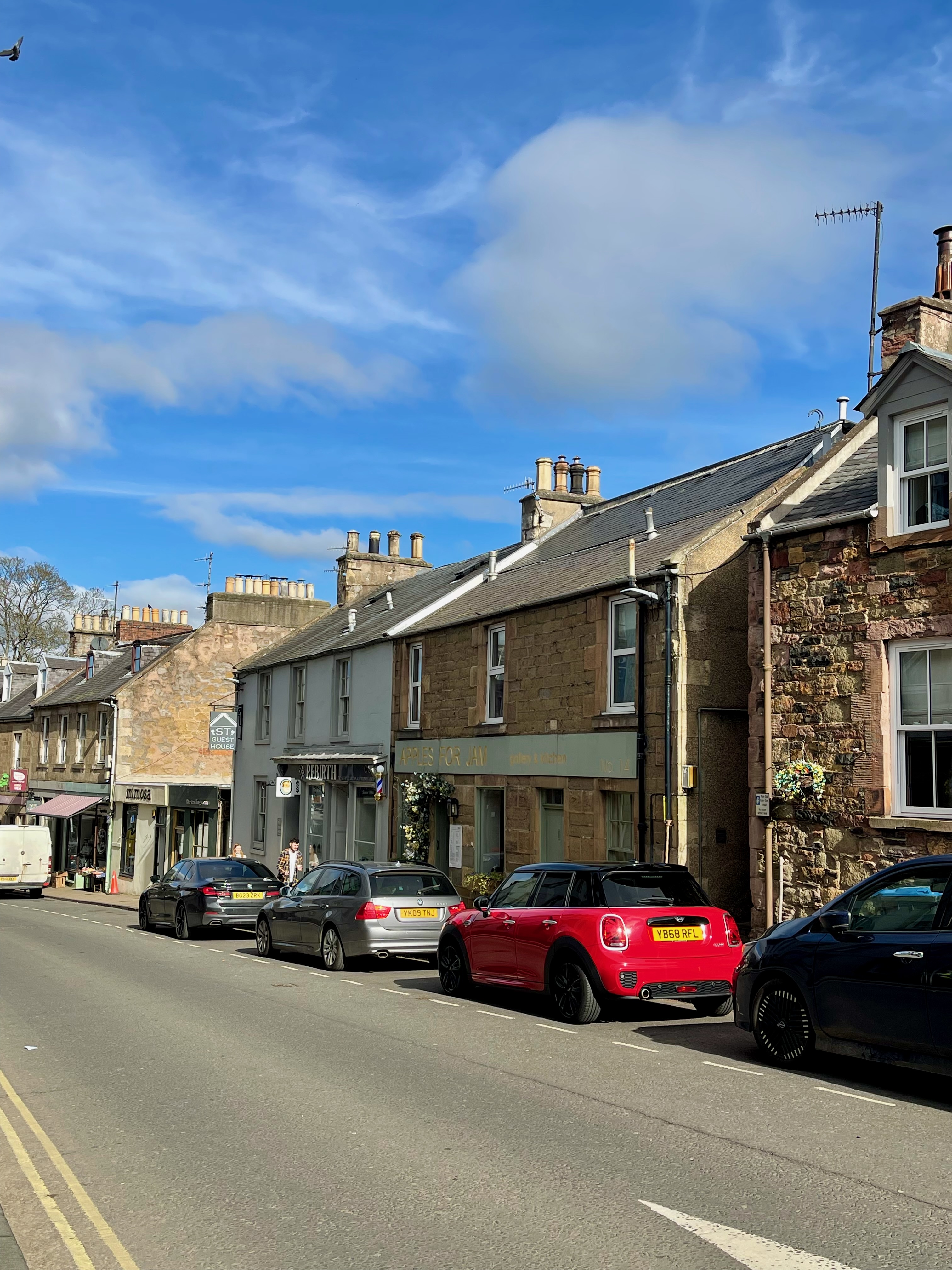Oh, while I remember, Melrose (along with Lauder, a village just before it) is in the middle of an “in bloom” time. Daffodils are everywhere and shop windows are decked out for spring. A woman with a clipboard and a hi-vis vest was walking through the high street doing an audit on it all. Watch for this scene in the next Philly Barker.