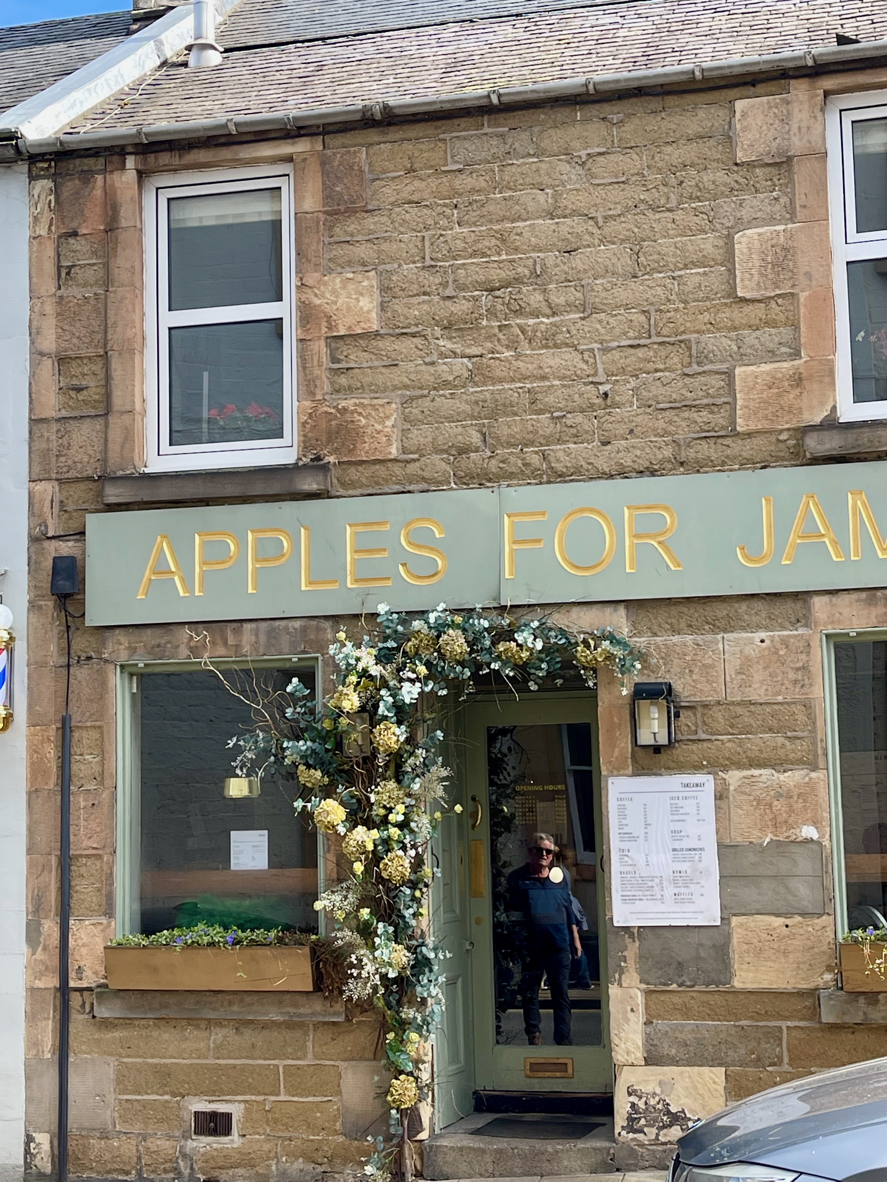 In the bookshop I bought Flora Shedden’s Supper, and in the deli we bought the cutest set of six cheese plates. The shop keeper seemed a tad disparaging about the baker we’d bought our pies and Echelfechan (we can’t stop saying the word) from and suggested we head to Twelve Triangles, a few shops down, to buy bread. Which we did. [Update – it’s fantastic. Seedy, sour, and perfect with lashings of Yorkshire butter and Tiptree cherry jam.]