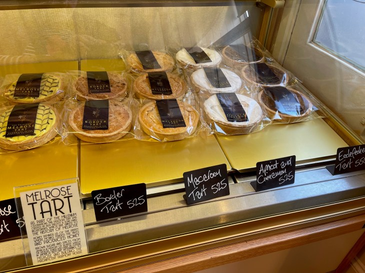 Dalgetty’s also sell a Melrose tart which is iced in the colours of the Melrose rugby club – yellow with black writing. Inside it’s a closely guarded secret. From the description given to us it sounds like an iced Bakewell tart, but obviously it’s not because we’re in Melrose and not Bakewell. When I said that, I was told there’s also honey and ginger in it which would make it like a Bakewell tart in texture, but also nothing like it. (insert shrug emoji)