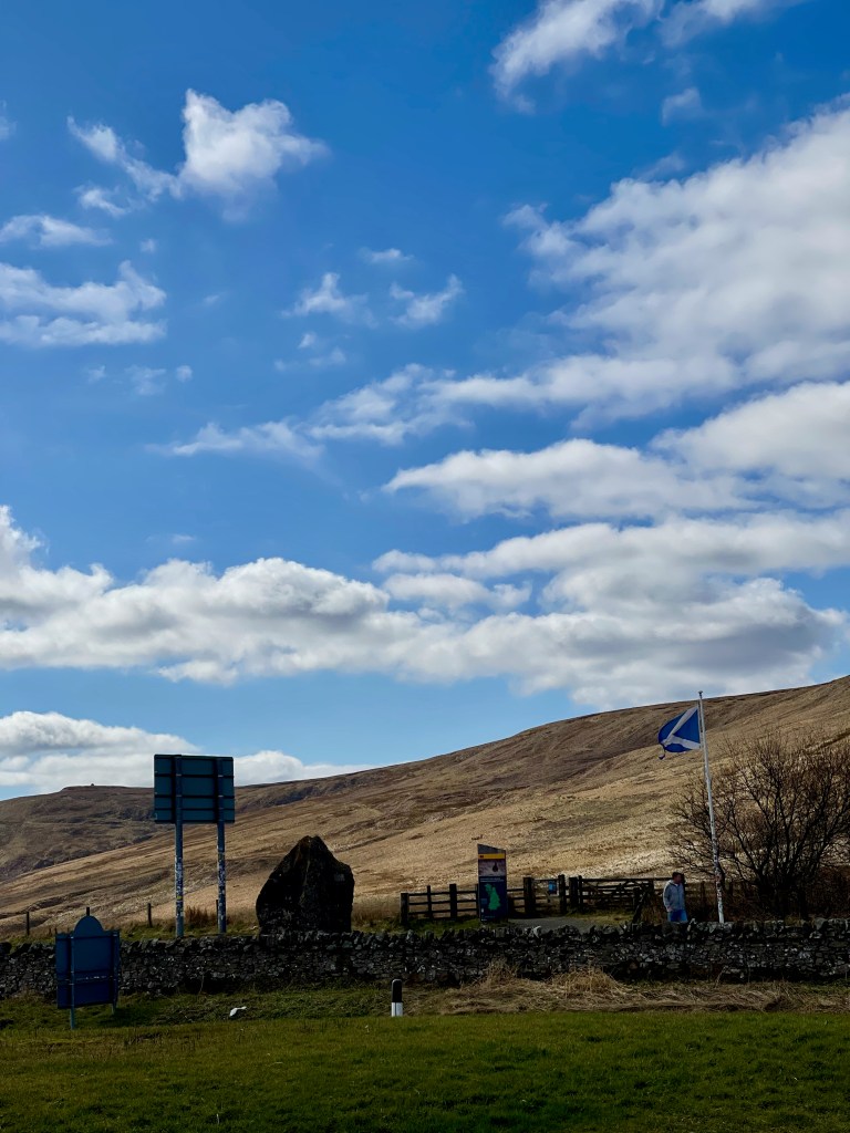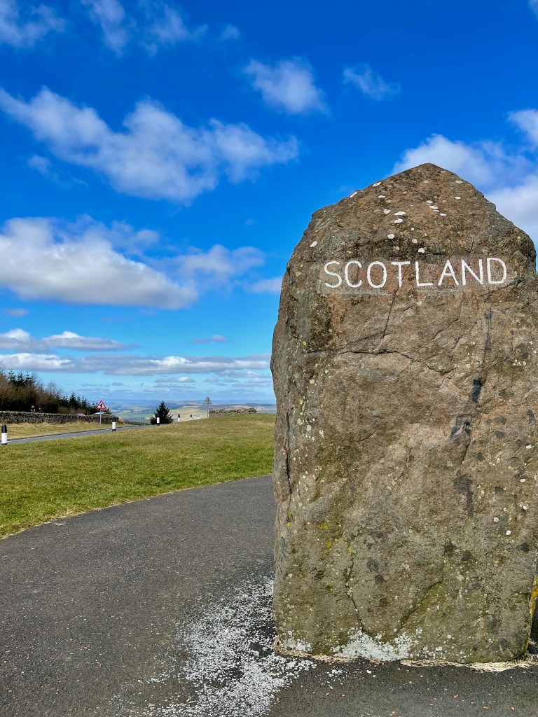 I can’t even say echelfechan once let alone three times! Man you drove a long way for breakfast on an empty stomach! As to the cottage you are staying in seems like a lovely spot in beautiful surroundings. Isn’t it funny how the world can turn out to be so small! Love the picture at the border! And all that food looks good but for the bland thin soup. I guess you can’t win them all and you won the weather lottery!