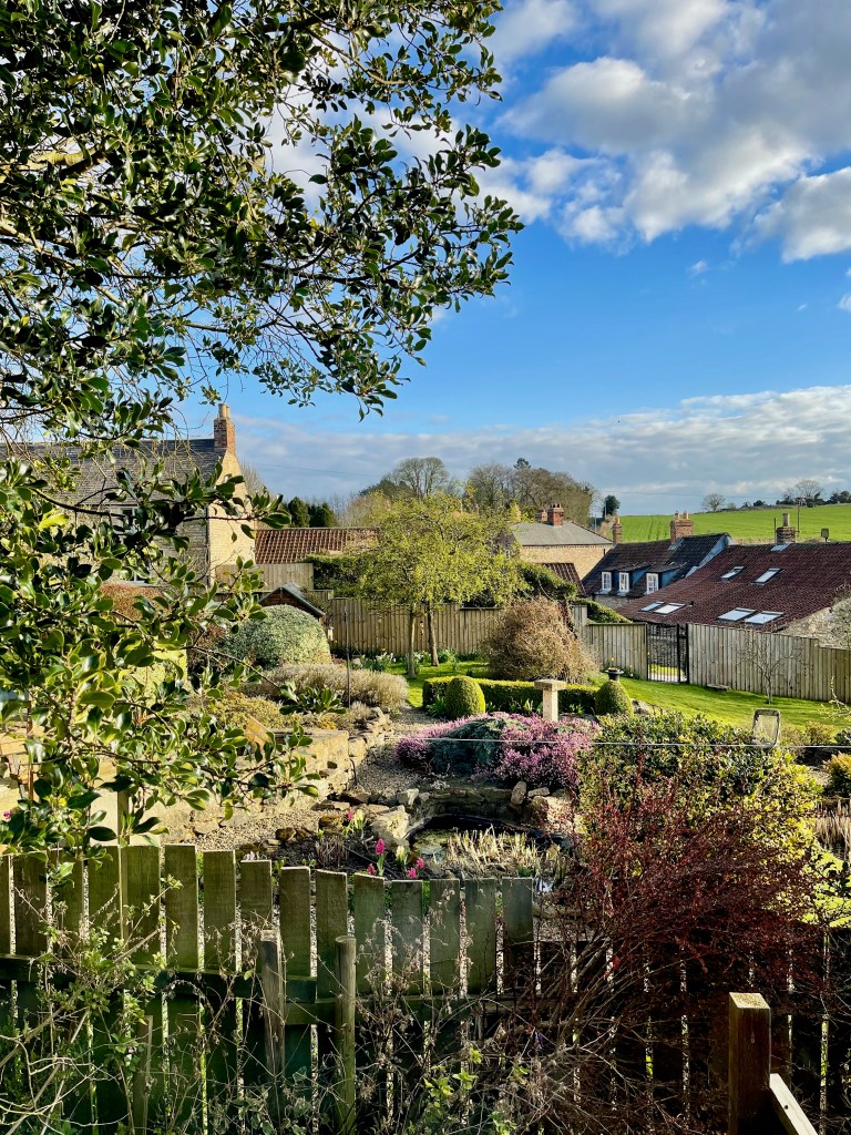 Our cottage, located behind the Blacksmith’s Arms, is disappointing when compared to Herbert Cottage (where we stayed last time) or Yew Tree Cottage (where we stayed the time before), but it is still comfortable. [In the Philly Barker novels, Chipwell Arms was inspired by Westow’s Blacksmith’s Arms and Philly’s cottage was modelled on Yew Tree Cottage.] There’s also a lovely view into next door’s beautiful garden.