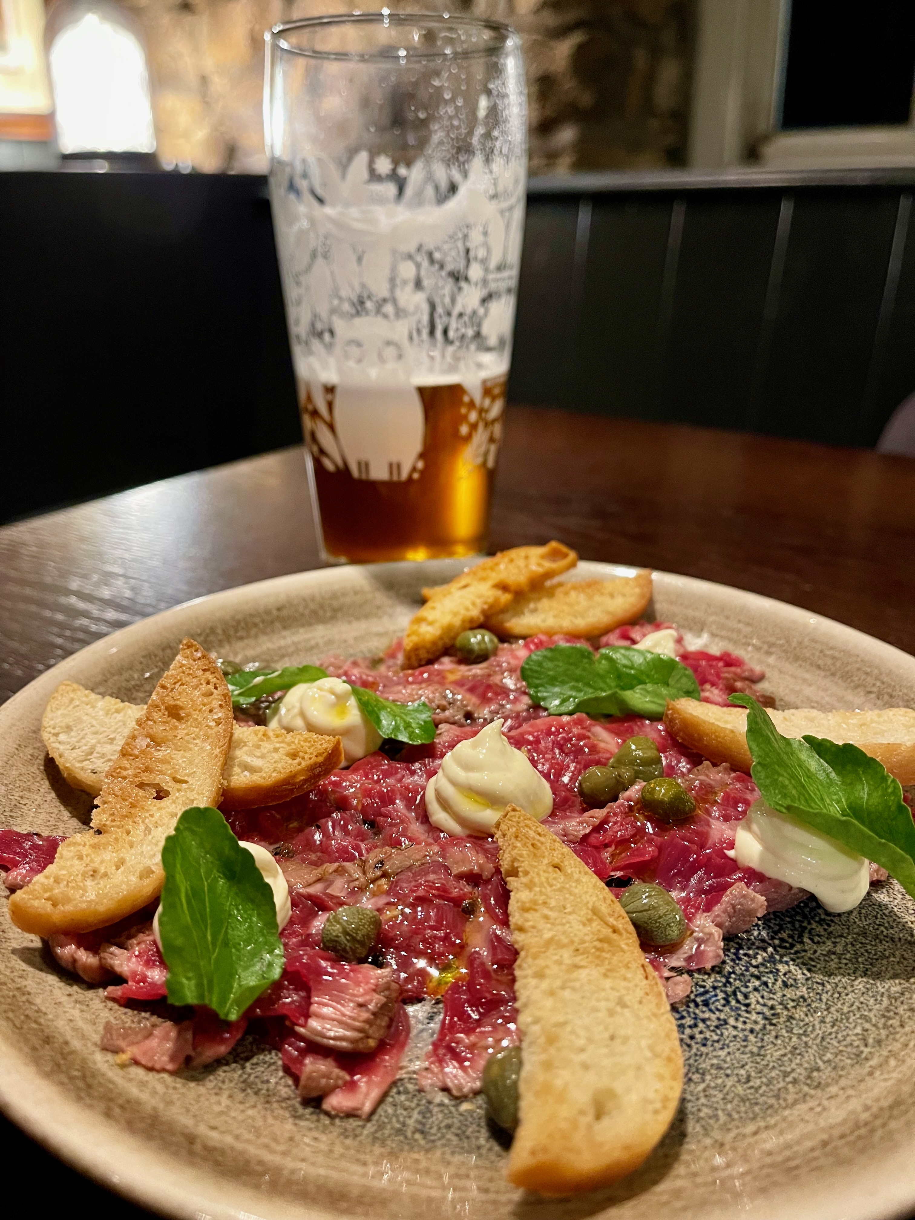 The menu at the Stone Trough Inn is very different to the last time we were here (in a very good way). We got chatting to Matt, who seemed to be running the place, and he said he’d been brought in to develop a food-forward menu and an expanded wine list.