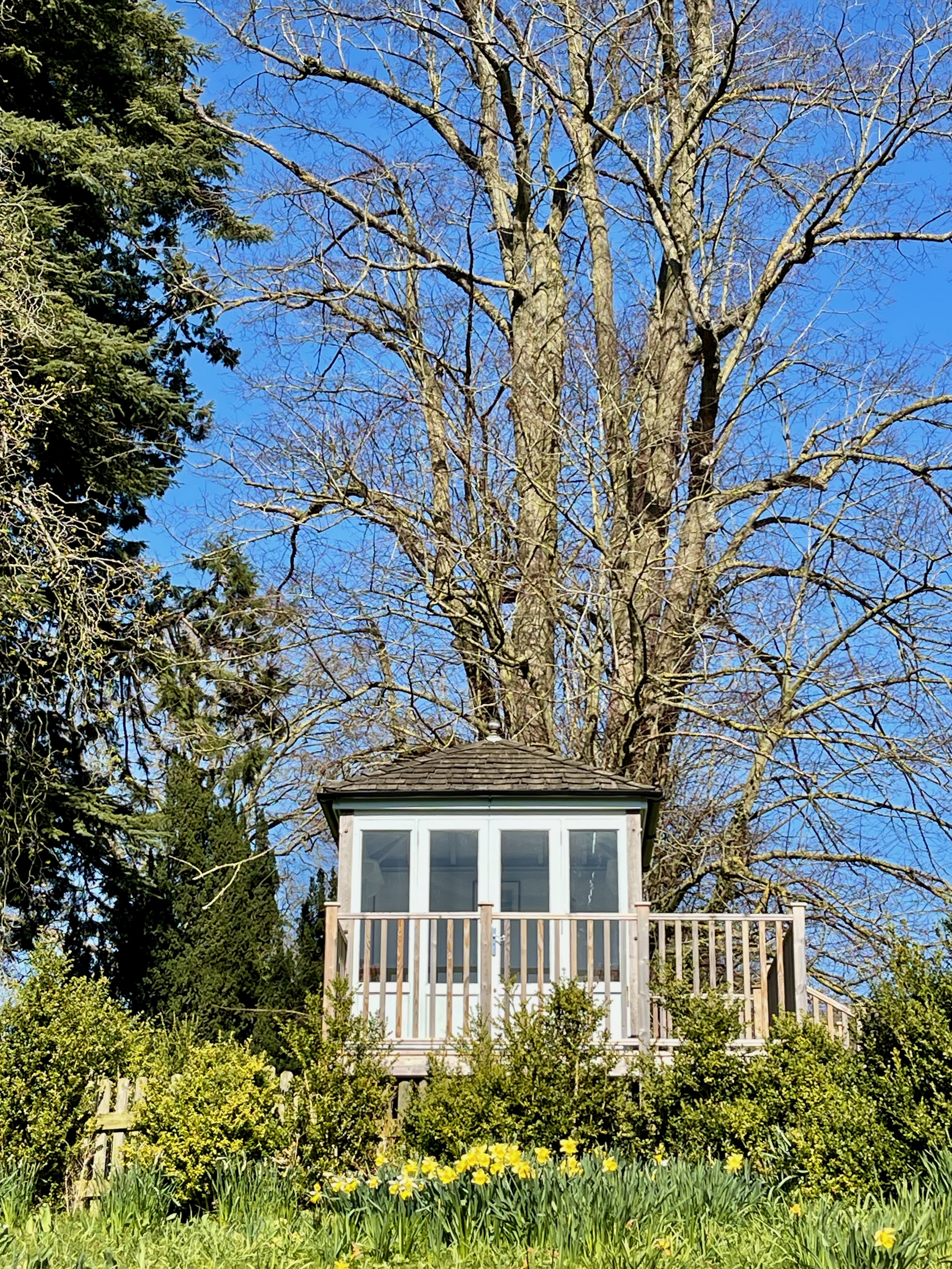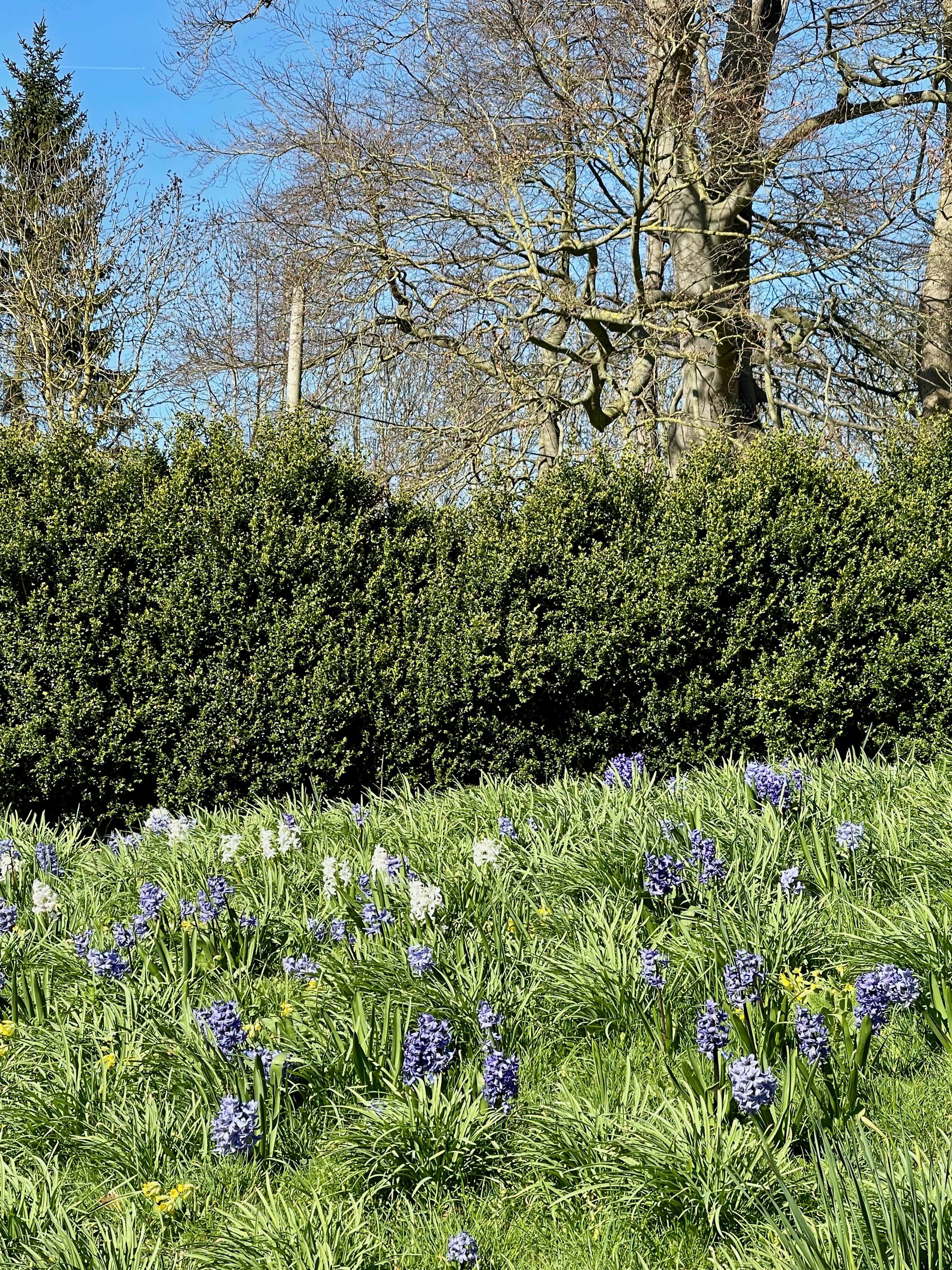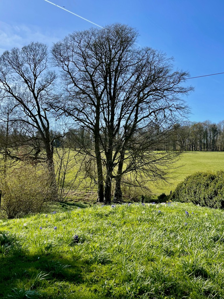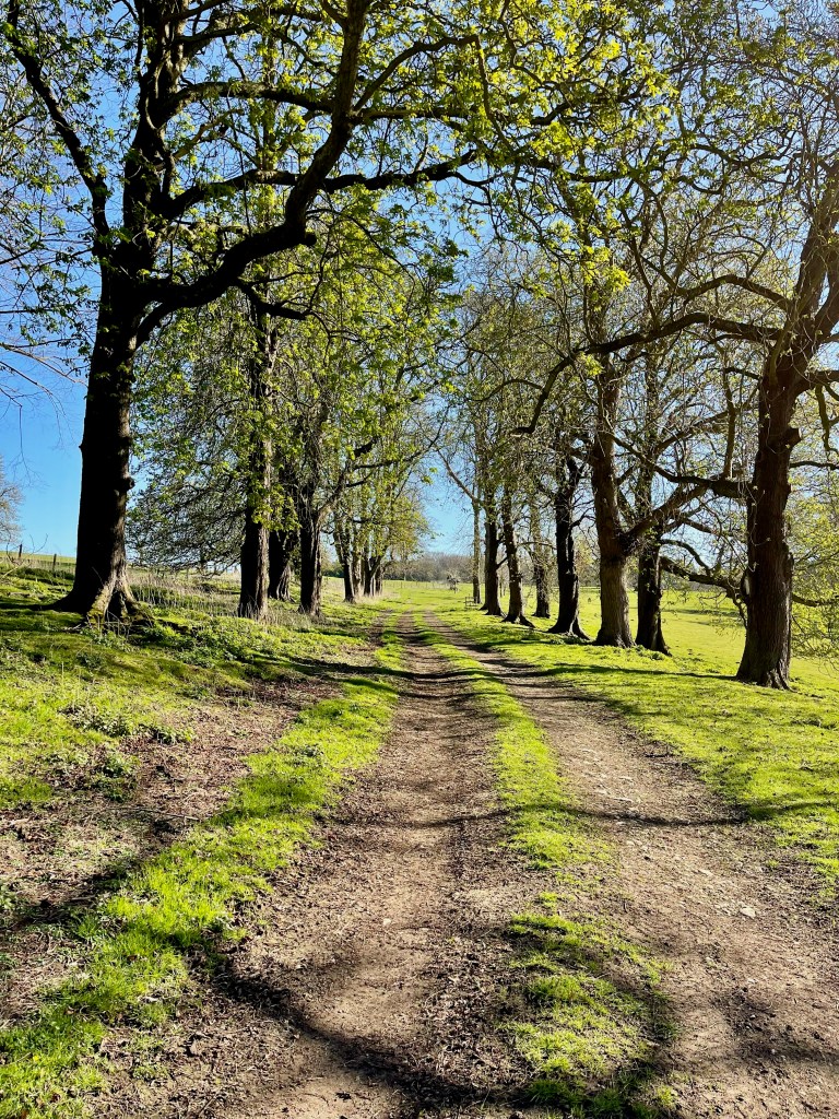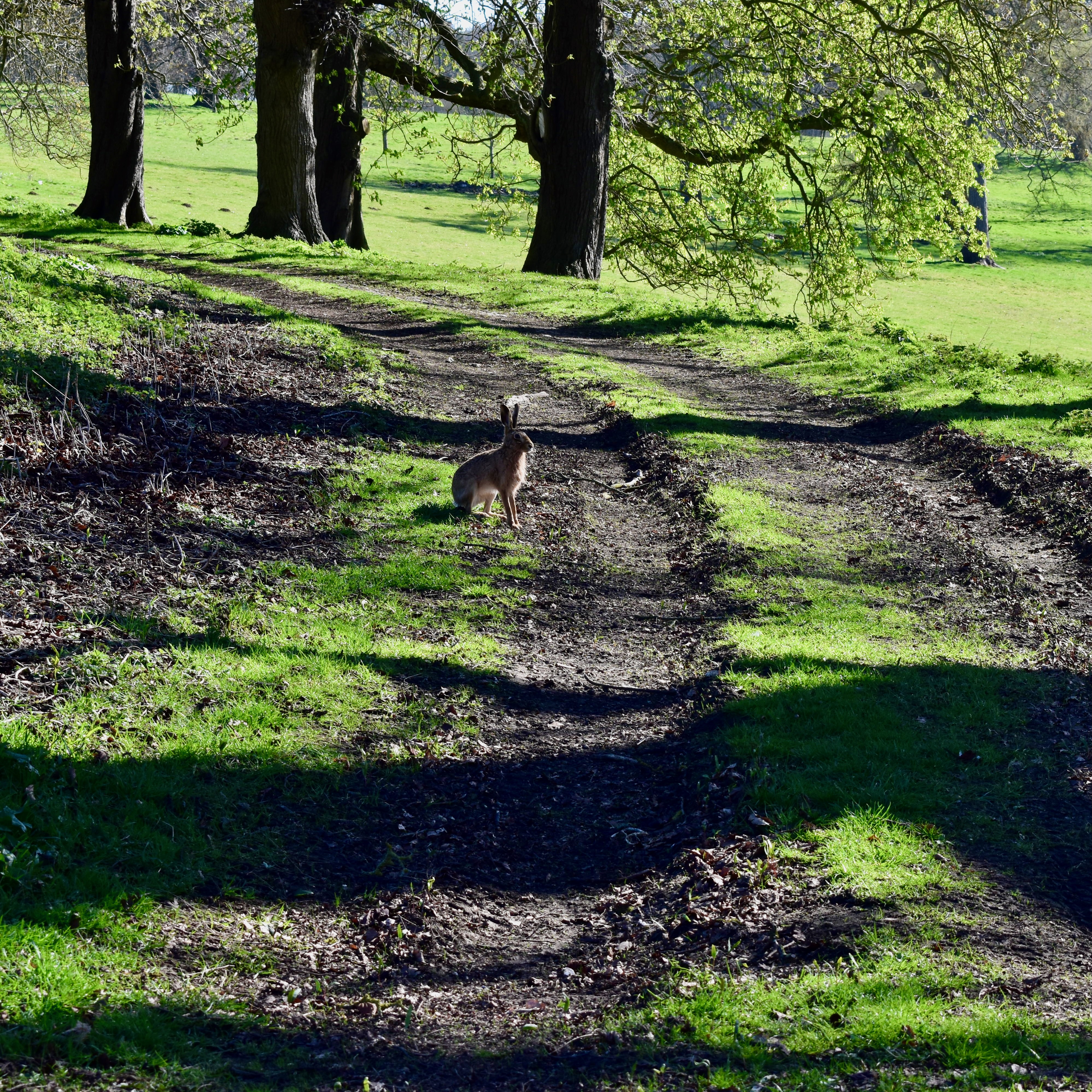 After morning tea, we skipped lunch, and I spent the afternoon wandering through the gardens and lanes, thrilled to see hares and deer as I walked. Sadly, none of my close pics of the hares were clear. I’ve decided I’d be very happy to walk lanes like these all the time, although Grant told me that would get very old very quickly if the weather turned and I was trudging in mud. Way to rain on my parade.