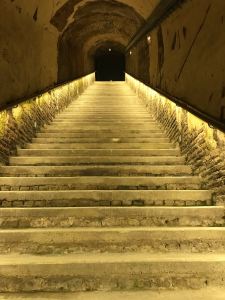 As a tasting and visiting experience, this one was very different to Moet – and also markedly more expensive. More on the cost later. The primary difference here was in the art and the crayeres – ancient tunnels dating back to the Roman times and dug deep into the chalk under the city of Reims.