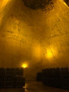 Ruinart was the first of the champagne houses to utilise these old chalk mines for wine production. There are 8kms of these galleries under Ruinart, with the largest cavern being 40 m underground. Down here it’s a constant 10C.