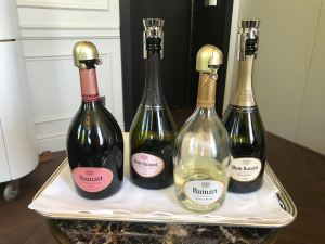 Oh, a note on the bottles. They look different from most champagne bottles and the chardonnay or blanc is in clear bottles – something which makes the wine even more fragile – but is unique to Ruinart.
